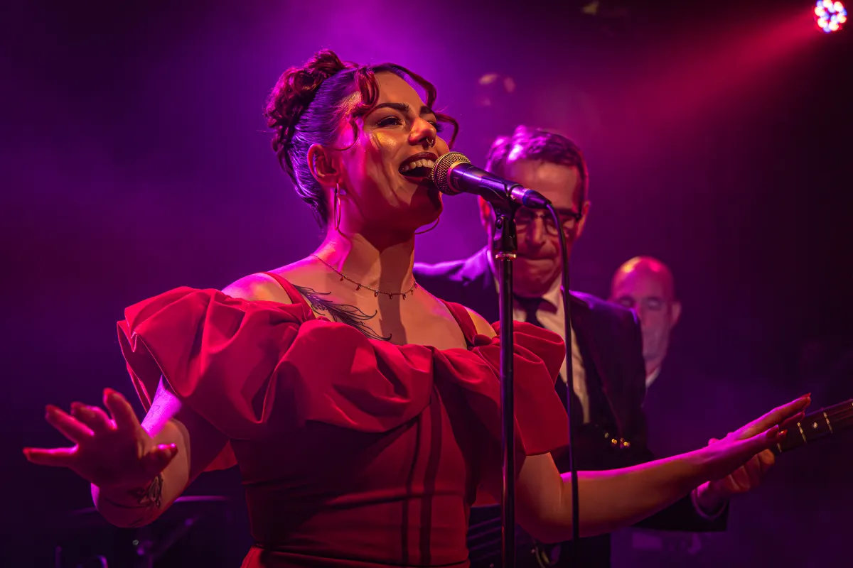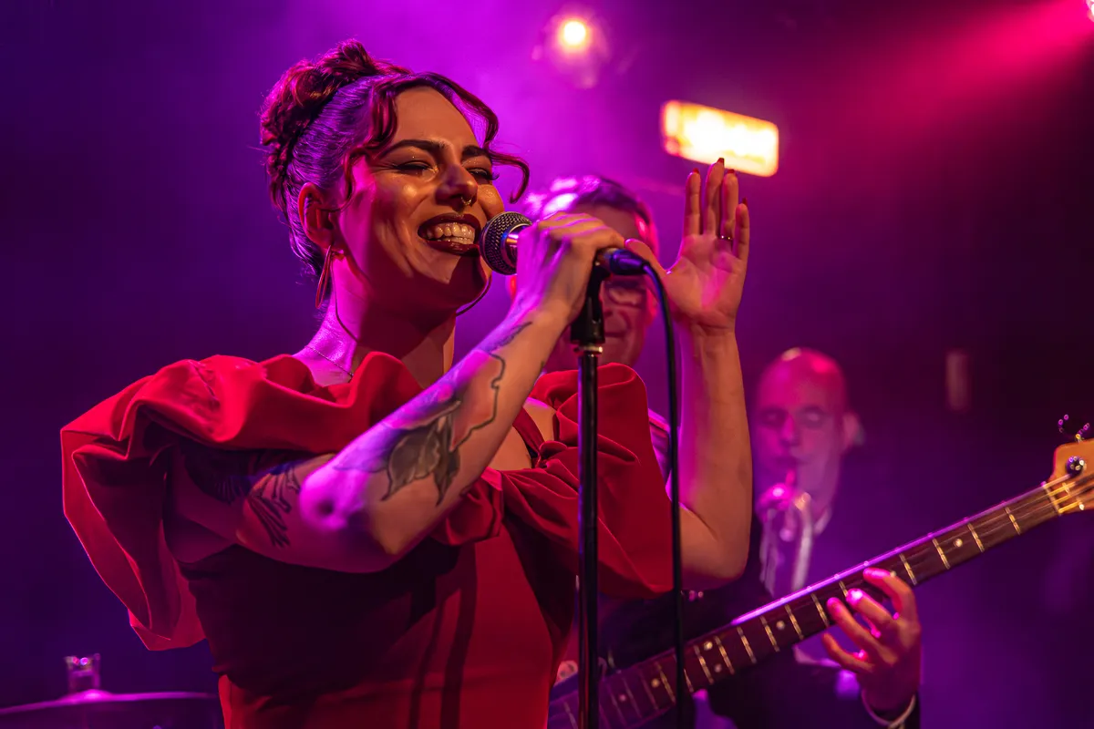 Dat zal vanavond blijken. Klokslag 20.30 uur tikt Bas af en opent de band met het opzwepende instrumentale nummer Chicken Bones. Daarin is een hoofdrol weggelegd voor de nieuwe toetenist Anton Titsing, die meteen helemaal in zijn spel zit. Bij het tweede nummer Rafaela maakt Roxanne haar diva-entree, onder luid gejuich van het publiek. Haar zang klinkt zoals ze eruit ziet: sterk en zelfverzekerd. Maar al na de derde song moet er even iets gebeuren aan haar outfit. “Ik heb me leuk aangekleed voor jullie, maar ik merk dat ik deze schoenen eigenlijk heel kut vindt”, laat ze weten. Dus hup, de schoenen gaan uit en Roxanne zingt gewoon verder op blote voeten.