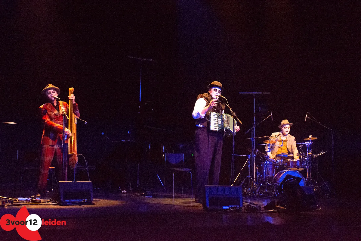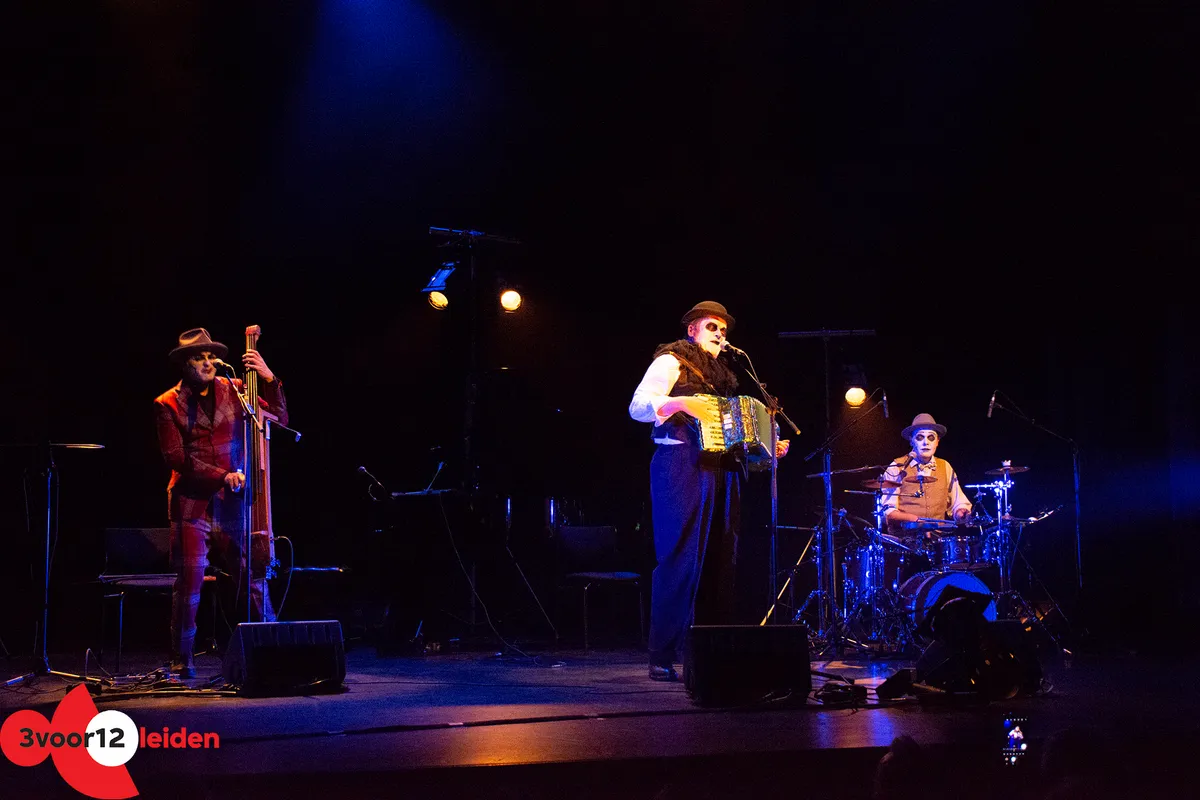 Op zaterdag 29 oktober 2022 brachten The Tiger Lillies in de Leidse Schouwburg een post-punk spektakel met een vleugje chanson en een flinke slok blues. Creatief brein sinds 1989 is Martyn Jacques (vocals, accordeon, piano, ukelele). Samen met Adrian Stout (contrabas, zaag, theremin) en Budi Butenop (drums) roert hij met een groezelige vinger in dat lekkere macabere plekje van je ziel. De nummers worden licht gebracht maar komen zwaar binnen, of wellicht andersom, voor de minder melancholische luisteraar. Met teksten als 'Murder is easy', 'Mummy's in a mental home', 'Alone with the moon' and 'Pretty Lisa, the tattoos they hide the bruises' lonkt de zelfkant van de samenleving. De romantiek van sailors, hookers en freaks. Om met de Tiger Lillies te spreken: "So the evening's been a succes, and we had pleasure in excess. Don't worry it will all end soon. The crack of doom is coming soon."