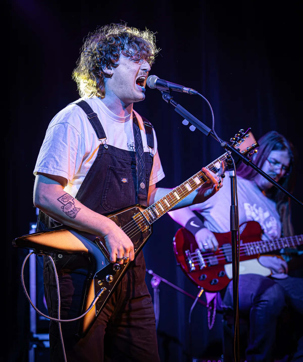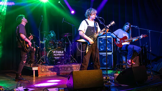 Je zult toch maar met je drie beste vrienden in een band zitten. Dat lijkt een recept voor veel lol en de energie spat er dan ook vanaf bij de mannen van No Offense. Diederik, Stef, Tom en frontman Daan ontmoetten elkaar in Enkhuizen en maken sindsdien het live circuit in de regio onveilig. Met hun stevige opener ben je meteen blij dat je toch die oordoppen even bij je hebt gestoken vanavond. Hun muur van post-skate-punk en grungy hardrock klinkt namelijk loeihard, maar daardoorheen hoor je wel degelijk dat de nummers knap in elkaar zitten. Ze volgen elkaar in hoog tempo op, waarbij bij één song opvalt dat de fans in de zaal na een break in de muziek op de tel nauwkeurig weten wanneer de band weer gaat invallen en het headbangen kan beginnen.