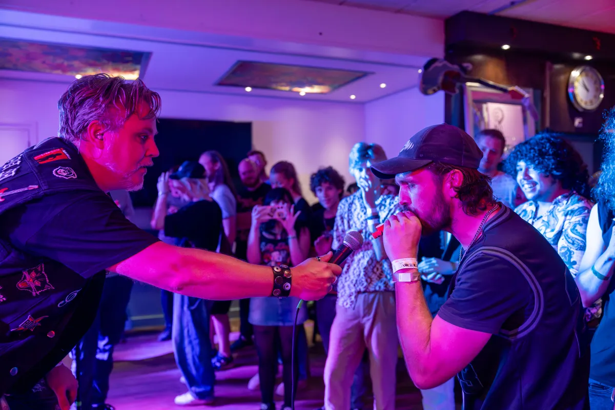Net als alle andere jaren spelen ervaren bands zoals Rabauw en acts of ook bands die voor de eerste keer spelen. Daarnaast veel vrouwen als muzikant, een enorm mooie saamhorigheid en een vol Heerhugowaards jongerencentrum dat al jaren een belangrijke functie vervuld in Noord-Holland. Dat vat Popmania 2025 min of meer kort samen. Afgelopen weekend hebben dertien acts plus No Offense - de winnaar van 2024 - in café en zaal van het jongerencentrum gespeeld, tijdens de oudste en grootste popprijs van de regio. De bezoekers lopen heen en weer tussen beide podia en zo schotelt Kompleks een non-stop avond van lokaal en regionaal talent voor. Voor bands gaat het ook om ‘the hang’. Het samen optrekken. Elk jaar ontstaan er samenwerkingen, nieuwe bands en wordt de scene versterkt. Op beide dagen staan veel regionale bands die zelf niet spelen in het publiek tijdens de optredens van Popmania 2025.