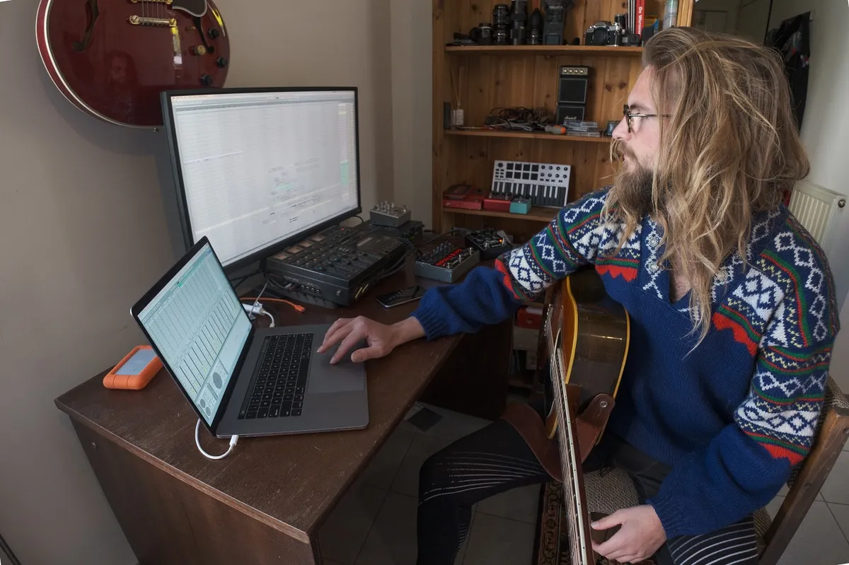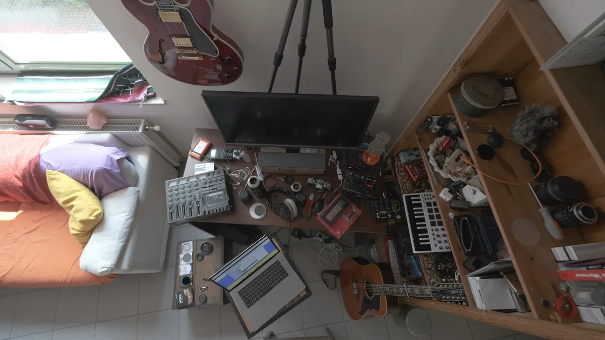 Tijdens de coronacrisis verblijf ik bij mijn vriendin in Gent. Eindelijk lekker samen zijn voor een langere tijd. Normaal ben ik veel op reis en niet lang op een plek. Ik heb hier nu een simpele home studio bij elkaar gesprokkeld. Jeroen van de Bovenkamp, de filmmaker waarmee ik mijn werkplek deel in Zalen Schaaf, heeft mij wat apparatuur opgestuurd vanuit Leeuwarden, waarmee ik elke dag lekker aan het klooien ben. Ik gebruik deze tijd om dingen uit te zoeken en te leren waar ik eerder niet de tijd voor voelde.