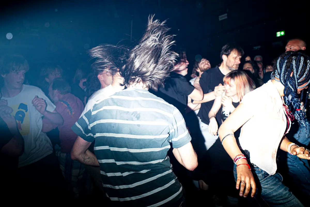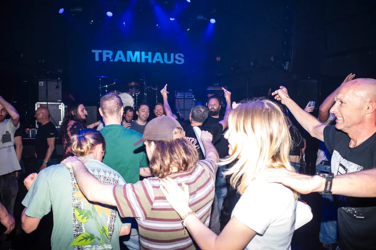 “Deze is voor alle dansers, let's fucking goooo”, schreeuwt Lukas Jansen als tegen het einde van de set het begin van ‘Beech’ wordt ingezet. Het sein 'moshpit' is dan gegeven en eindelijk danst het publiek nu minstens zo gek als Tramhaus zelf.Gooi daar vervolgens ‘Minus Twenty’ tegenaan, een nummer met een horrorachtig gevoel, en de Rotterdammers bouwen naar een zinderend einde, boordevol zwevende gitaren en bassiste Julia Vroegh die meegilt. Bizar om te zien hoe aan energie nog niets is ingeleverd vergeleken met het begin van de avond. Als onder luid gejoel dan nog Corry Konings wordt afgespeeld, klopt de titel van dat nummer: van Tramhaus kregen we vanavond een heel apart gevoel van binnen.