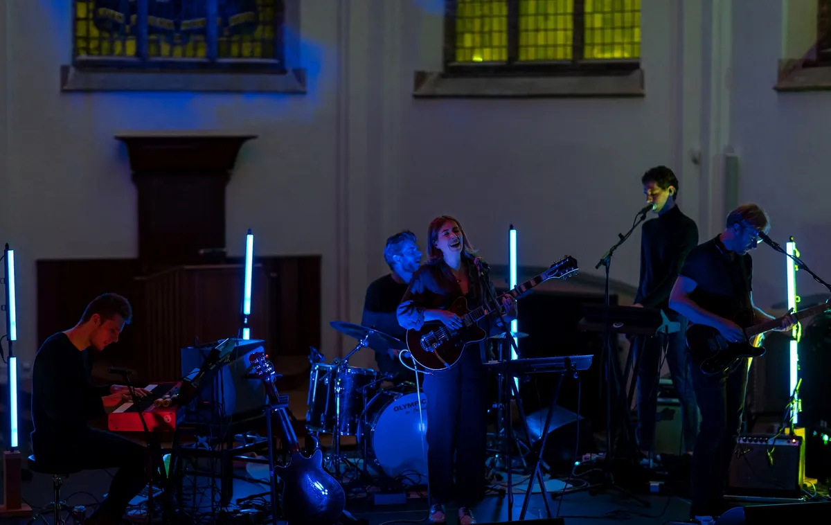 De dromerige indiepop van Robin Kester lijkt dan ook een prima keuze voor de vuurdoop van live-muziek in deze fraaie omgeving. Haar oorspronkelijk meer minimalistische aanpak van voornamelijk zang met gitaar heeft de afgelopen twee jaar plaatsgemaakt voor een rijkelijker gearrangeerd geluid en ze wordt deze avond in Wageningen vergezeld van een vierkoppige band. Vanaf opener 'Portals' is het even zicht- als hoorbaar hoe de muzikanten hun best doen niet uit te schieten met het volume. Het komt de muziek echter wel ten goede; in combinatie met de soms haast fluisterende zang zorgt de kerkelijke galm als bonus voor een extra triphop-vibe.