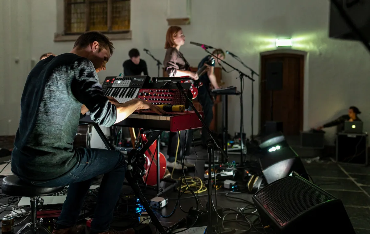 De visuele ambiance wordt vanavond grotendeels gedicteerd door de locatie. Het schaduwspel op de hoge, witte kerkmuren trekt daarbij minstens zoveel aandacht als de muzikanten daaronder. Een meer percussief gedreven nummer als 'Remove and Delete' vormt een extra akoestische uitdaging en ook 'Day Is Done' begint met een zware, resonerende bastoon waar de ruimte van de Grote Kerk wederom niet geheel raad mee weet. Onbedoeld zorgt dat ook wel weer voor een stuk extra spanning. Dat de band zich maar al te bewust is van de uitdagende geluidsomgeving kunnen we opmaken uit de anekdote die Kester ophaalt over de tijd dat ze toonladders oefende tussen de galmende muren bij haar grootmoeder.