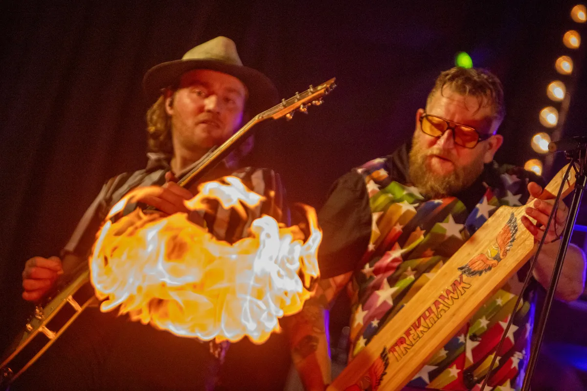 ‘Kom op tijd, bier voor maar twee euro!’, zo luidde de uitnodiging voor de albumpresentatie van Snee in ’t Oor van streektaalband Trekhawk – de spirituele opvolger van boerenrockband Dolly en zien Tarrels die in 2019 na 12 jaar rocken op (boeren)festivals en in tentfeesten werd opgeheven. Na vier jaar singles te hebben uitgebracht was het tijd voor een album en daarom werd ’t Schienvat ‘op’ Erica afgelopen zaterdag omgebouwd tot rock-n-roll-paleis, inclusief een meer dan puik voorprogramma (Young Memphis) en een vuurshow à la Rammstein.