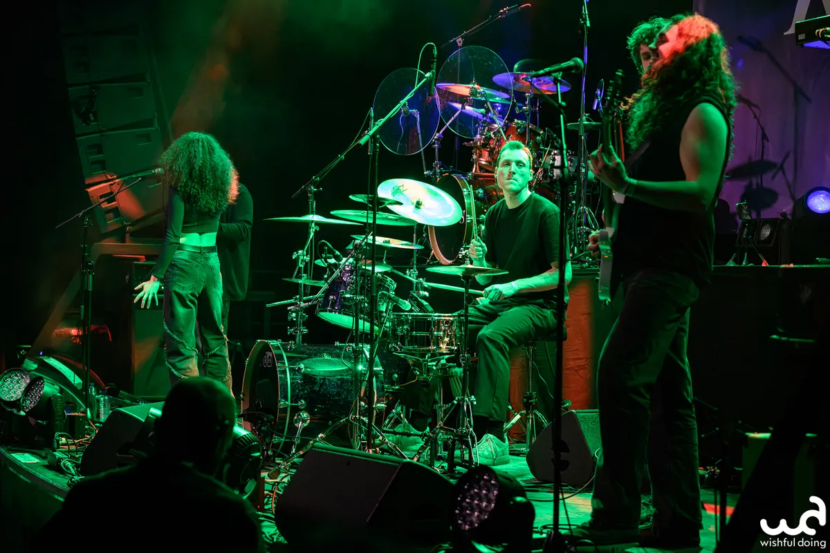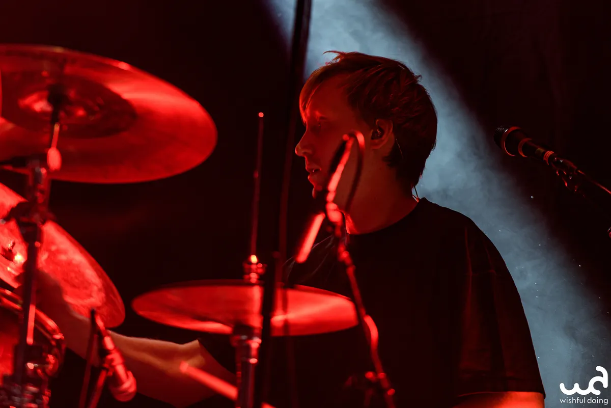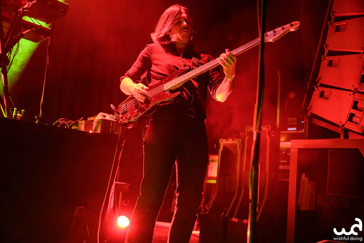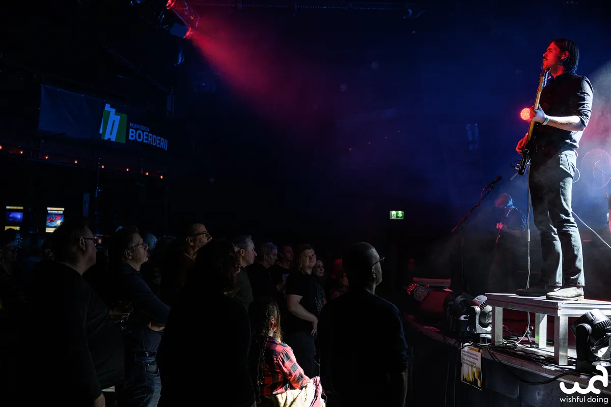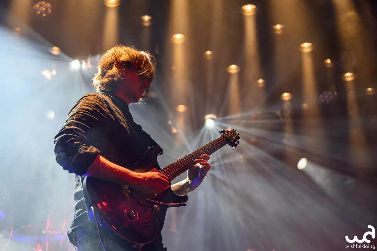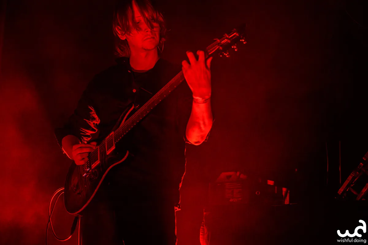 Rode lampen verlichten het podium van achteren. Silhouetten van vijf muzikanten die ‘Preceding’ van het tweede album in zetten. Zanger Simon lijkt, wanneer hij zingt, in uitdrukking (gesloten ogen, licht gebogen nek, intens zingend) eerder op Thom Yorke van Radiohead, dan op een standaard metal leadzanger. Gekweld is het woord. Ook in de muziek van de band menen we wat spoortjes Radiohead te horen. Bij ‘Conflating Memories’ is het onmogelijk om daar niet aan te denken. En dat is een compliment, geen verwijt.