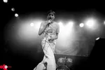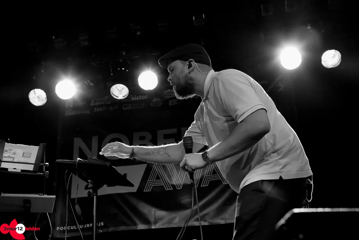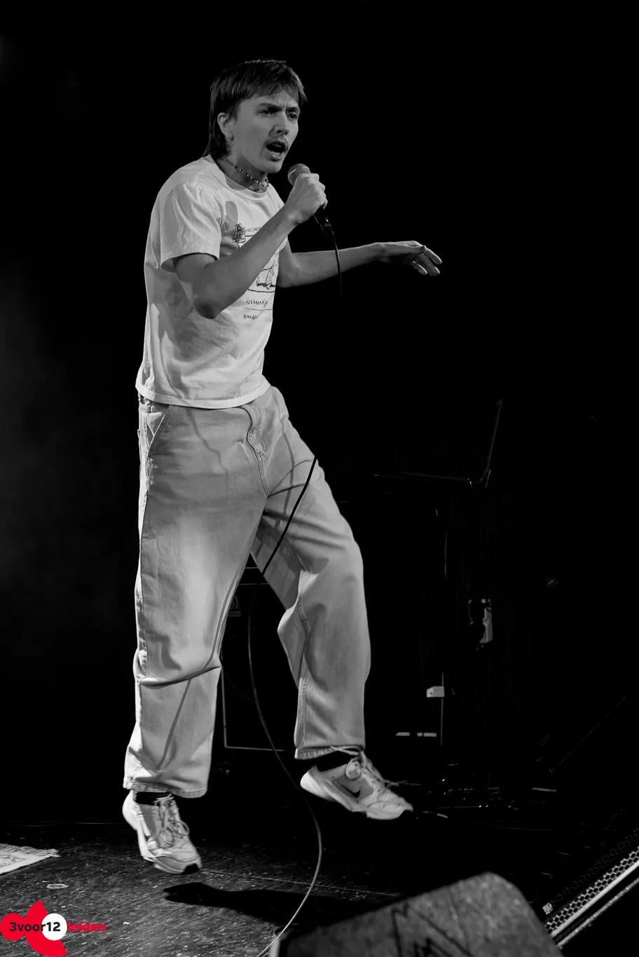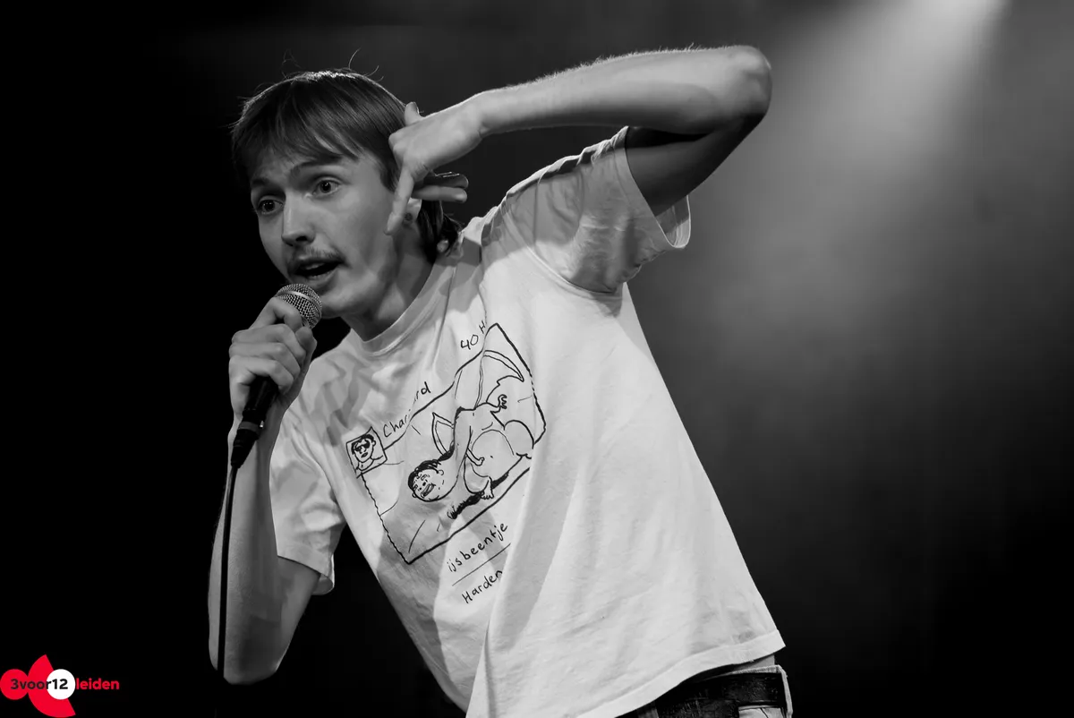 Dan volgt een disstrack op kermismelodie, waarbij de snellere secties iets te binnensmonds zijn, en dan moet de rapper van het rappe tempo even op adem komen, waarin hij vertelt dat hij ook producer is. In ‘plasticballen’ mist live de feature van Joostieboy, wat me doet afvragen hoe de artiest om zou gaan met de dynamiek van een tweede stem op de stage. Enfin, een bijtijdse boodschap over hoe moeilijk het is als consument je gedrag aan te passen met zo’n overweldigende klimaatcrisis. Gelukkig is daar afleiding met ‘wie?’, een onverschillig nummer over afwijzing, gevolgd door klassiekere rap die keihard pochend pingpongt tussen Engelse en Nederlandse teksten, en ‘morgen was te laat’, een afsluiter over uitstelgedrag die iets te persoonlijk landt gezien m’n moeite met deadlines. De meeste interne variatie qua stijlvorm naar mijn mening bij deze man, die hoge ogen gooit met zijn droogheid.