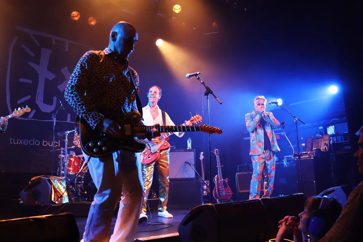 Gekleed in bijzondere uitdossing betreden de leden van Tuxedo Buck het podium. Panterprintpak met tie&dye-shirt, strak wit pak met panteroverhemd, pak met balletjes en pak met visjes. En als klap op de vuurpijl frontman Walter geheel in goud gehuld. Daar krijgt hij al snel spijt van, want als het zweet van zijn gezicht druipt trekt hij snel zijn jasje uit. Opzwepend roept hij zijn publiek toe. Het is feest, er moet gevierd worden. Echter zonder dat de band afdaalt tot het niveau van een feestband.