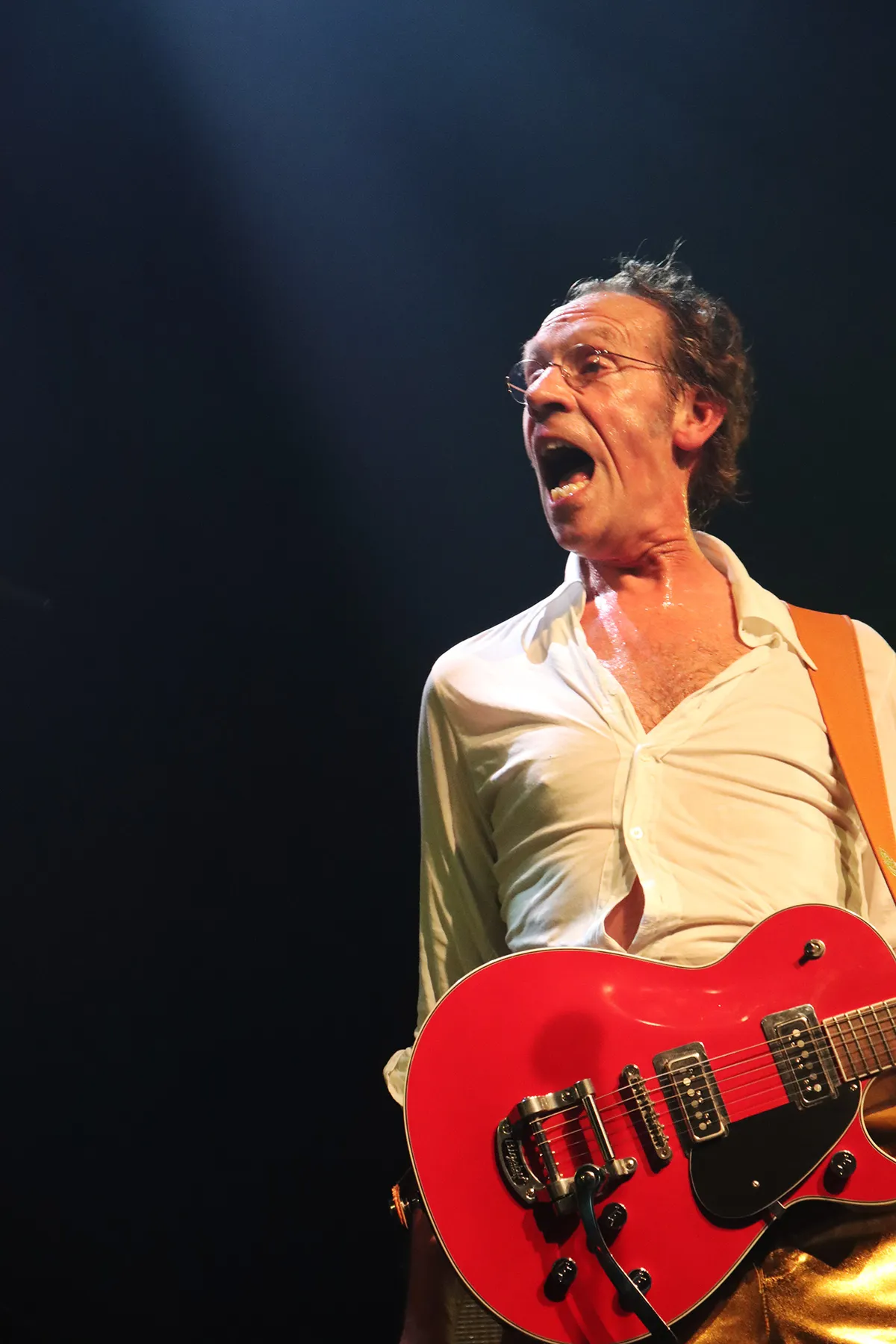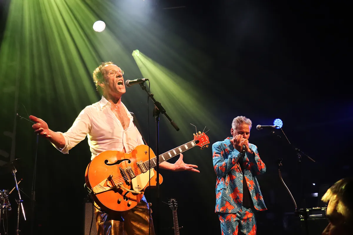 Walter van Rooij praat intussen de nummers aan elkaar met toevoegingen als ‘een liedje over drugs’, of ‘we gaan nu een nieuw liedje spelen’. Waarbij hij de hoop uitspreekt dat ze allemaal tegelijk eindigen ‘want dit is de eerste keer dat we het voor publiek spelen’. Na veertig jaar zijn de bandleden goed op elkaar ingespeeld, je voelt de verbinding tussen de bandleden maar ook zeker met het publiek. Die band met het publiek wordt nog eens extra versterkt met de feesthoedjes die meteen braaf worden opgezet en door een groot aantal mensen keurig tot het einde van de show worden opgehouden.