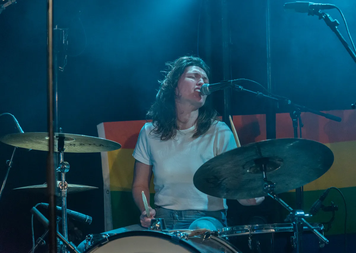 Na deze unieke beleving zijn de laatste uurtjes van Grasnapolsky 2022 om te vlammen. Met Hang Youth, Never Been To Berlin en Goldband als laatste acts is het gegarandeerd dat iedereen uitgeblust naar huis kan. Al moet de liefhebber die alle drie de shows wil zien hard rennen. Om onverklaarbare redenen zijn Hang Youth en Never Been To Berlin tegelijkertijd geprogrammeerd. Een bijzondere keuze, gezien beide een vergelijkbare vibe hebben bij hun shows, die vooral in het nadeel van het Groningse duo uitpakt. De show van de groep rond Abel van Gijlswijk levert precies wat je kan verwachten: chaos. De korte punknummers kunnen vrijwel door iedereen worden meegeschreeuwd (al is Abel amper te verstaan en is het lastig in te schatten welk nummer er wordt gespeeld) en leiden tot bijna onafgebroken moshpits. Abel staat er als een tevreden Pippi Langkous bij te grijnzen.