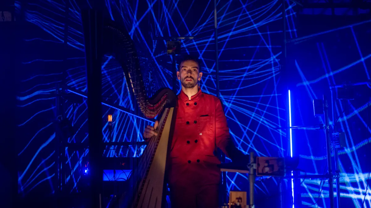 Minstens net zo uniek is het optreden van REMY en het Blauwe Uur. Samen met stadsdichter Myron Hamming maakten zij al deze trailer voor Grasnapolsky. De harpist stond in 2019 ook al op het festival, en wist toen al te verbluffen. Nu is hij terug met een geheel robotorkest. Die bedient Remy zelf tijdens het spelen. Het gevolg is een meanderende show met fantastische lichteffecten en kleine subtiele melodie'tjes en accenten die gemaakt worden door de 'orkestleden'. De harpmuziek neemt je mee en weet moeiteloos die ene gevoelige snaar te raken. Helaas kan Myron Hamming er zelf niet bij zijn, maar zijn teksten worden via band afgespeeld en weten alsnog moeiteloos impact te maken.