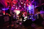 ‘Reverb is love, love is Reverb’, klinkt een mysterieuze stem uit de speakers van De Kromme Haring. Deze woorden blijken het startschot voor de ware ruimtereis die Moonwatch heet. De band is één van de acts op het door henzelf georganiseerde showcaseprogramma onder de naam Celestial Spaces. De knipperende cockpit van effectpedalen op de vloer wordt gestart, en het publiek wordt met een orkaankracht de kosmos in gelanceerd. Tegen een bewegend decor van wolken en roze bergen hypnotiseert Moonwatch de zaal met etherische, lang uitgesponnen dreampopjams. Even wordt de betovering doorbroken door een technisch probleempje: één van de achtergronddia’s is vermist. Na een tijdje zappen geeft zangeres Yvet Youssef het op. “Dan maar geen glinsters!”, lacht ze. Muzikaal wordt het gebrek aan glinsters ruimschoots gecompenseerd. Met de vele fonkelende, vervormde gitaarsluiers bewijzen de twee gitaristen dat je op je sokken ook prima kunt shoegazen. Ondanks de dikke brei aan soundscapes en - natuurlijk - reverb, vervalt het vijftal geen enkel moment in oeverloos gepingel, een gevaar dat bij dit genre nog wel eens op de loer kan liggen. Moonwatch weet de aandacht drie kwartier lang moeiteloos vast te houden. Na een allerlaatste machtige climax wordt het publiek keurig weer op aarde gezet en neemt de formatie het luide applaus in ontvangst. Als een goede piloot na een zachte landing. (SG)