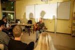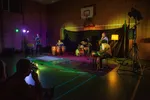 Als verslaggevers zijn we al ingedeeld en mogen we op stap met Sabine. Ze neemt ons mee naar de oude gymzaal van de Nieuwplaatz, waar we twee acts te zien krijgen. “Was je ook bij het eerste Amuse Festival?” vraagt iemand in de groep. Oh ja, dat was in 2017, nog op de oude Nieuwplaatz-locatie aan de Ter Haarkade. Het had een ietwat andere opzet, maar een deel van de destijds optredende acts is ook nu weer present. Leuk om te zien hoe deze bands zich in de tussentijd ontwikkeld hebben.
