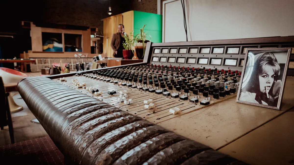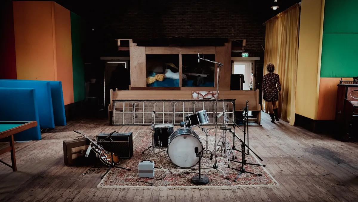 ‘Dit is ‘m dan, stelt niet zoveel voor hè.’ De 12 meter hoge ruimte is één grote bak licht en doet alles behalve denken aan een stoffig gebedshuis. Aan de muren hangen felgekleurde isolatieplaten, en er zijn twee knusse zithoekjes ingericht met louter ’70s meubilair. Hoewel er nog steeds een groot kruis hangt op de plek waar ooit een groot orgel stond, doet de verborgen lade met erotische cowboyboekjes in één van de desbetreffende hoekjes hard haar best om de Heer uit de kerk te jagen. Ook mag je er roken: 'Dat vinden bands wel gaaf', vertelt Hans. 'Tegenwoordig mag je in geen enkele studio meer roken. Ze kijken dan altijd heel verbaasd op als ze horen dat er hier gewoon gepaft mag worden.’