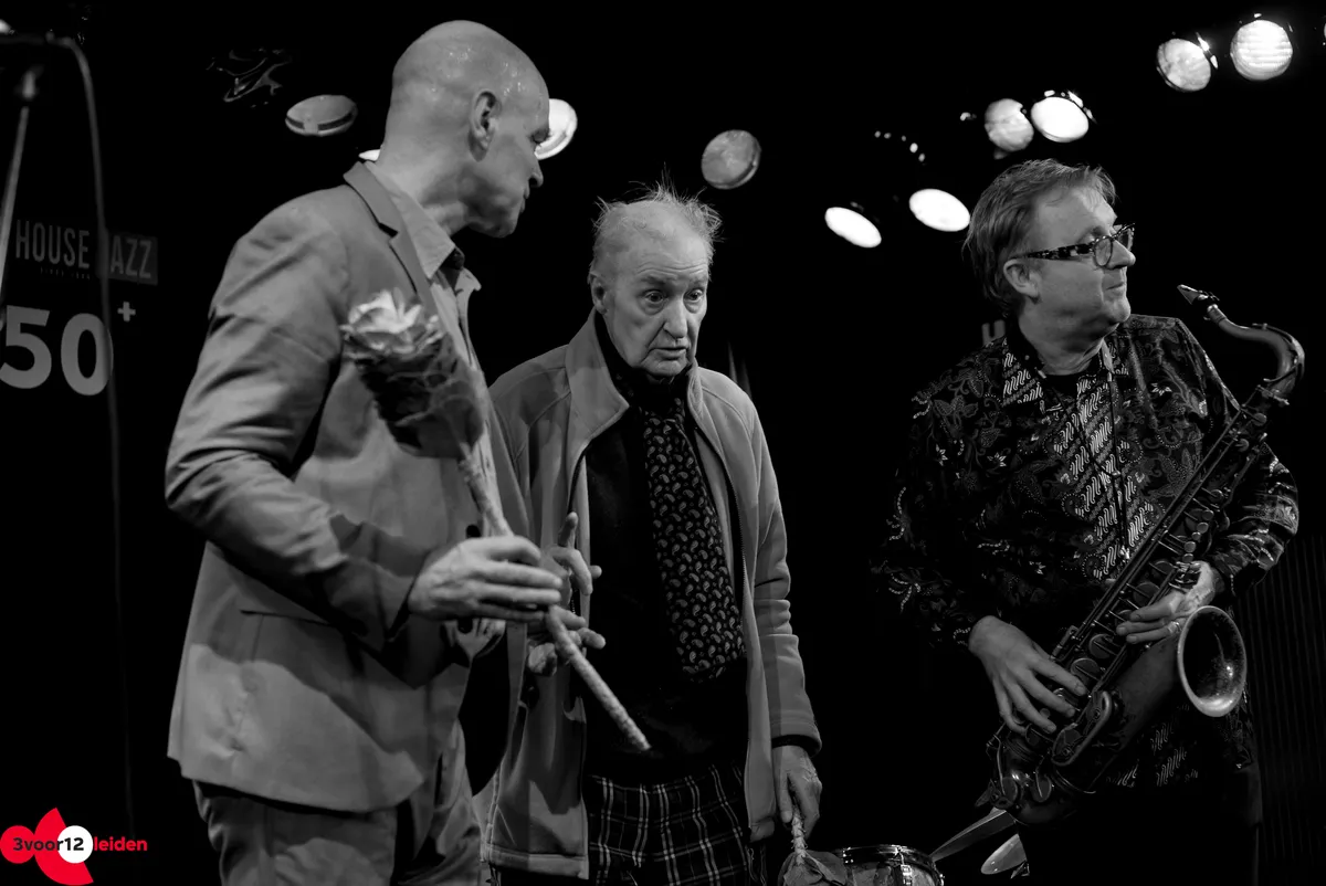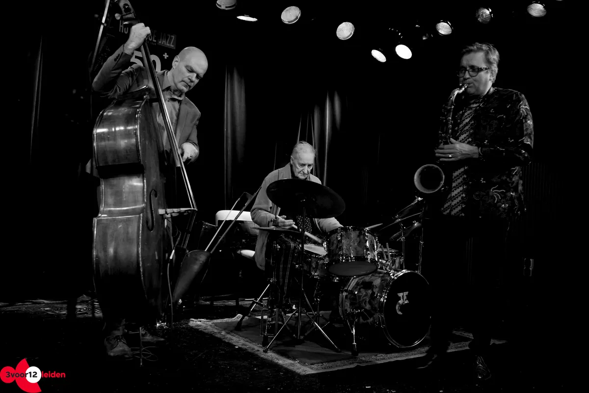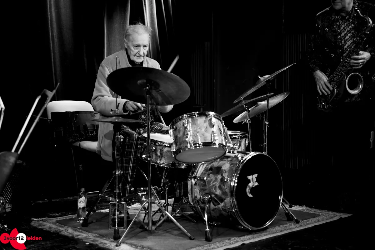 Zaterdag 25 november was het feest in de Qbus: jazzdrummer John Engels speelde met zijn trio de zaal plat ter ere van zijn platina jubileum. Sinds 1953 treedt hij al op als drummer - zeventig jaar later speelt hij nog steeds met verve verschillende zalen plat. 3voor12 Leiden was aanwezig bij deze nieuwe editie van Hot House Jazz.