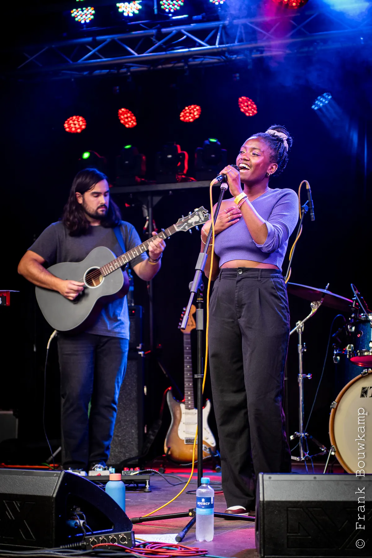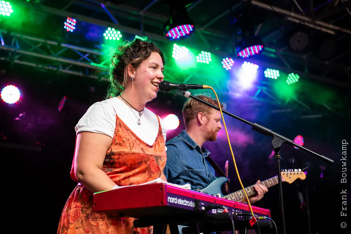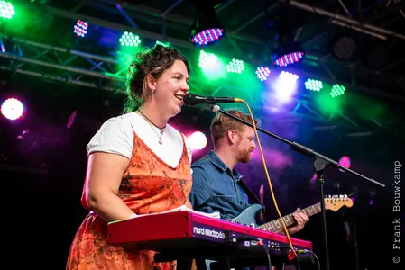 Sarah van der Klis was vorig jaar nog vrijwilliger op het festival, nu al is ze met haar nieuwe band Kim’s Garage de openingsact van het Future podium. De muziek is om haar basspel gebouwd. En vlak voor het optreden vertelt presentator Leo van Lieshout dat Sarah is aangenomen voor de Rockacademie. Net als drummer Sjoerd van den Corput. Alle leden zijn tussen de 17 en 20 jaar, de band bestaat pas sinds dit jaar. En toch staan ze er met lef. Sarah is duidelijk de dirigent en dirigeert ook het publiek van achteraan tot op de houten vloer voor het podium. Kim's Garage brengt eigen werk en covers zoals 'Talking Loud' uit de Motown stal. De eigen nummers mengen jazz met funk en rock en door de saxofoon, interessante gitaar- en baslijnen en de twee zangstemmen blijft het fris. Leuke opener van de dag en heel slim om veel familie en vrienden naar Barst te trekken. (DH)