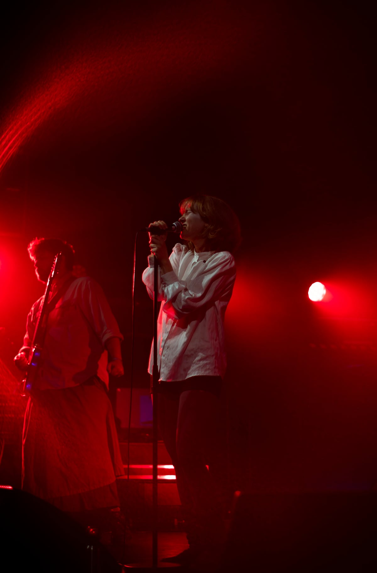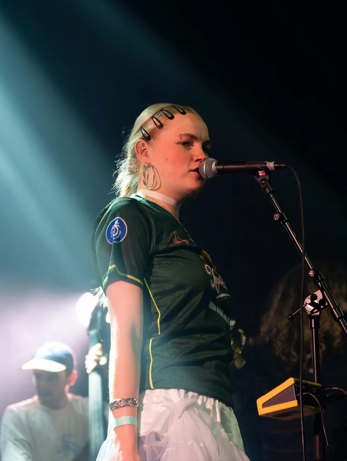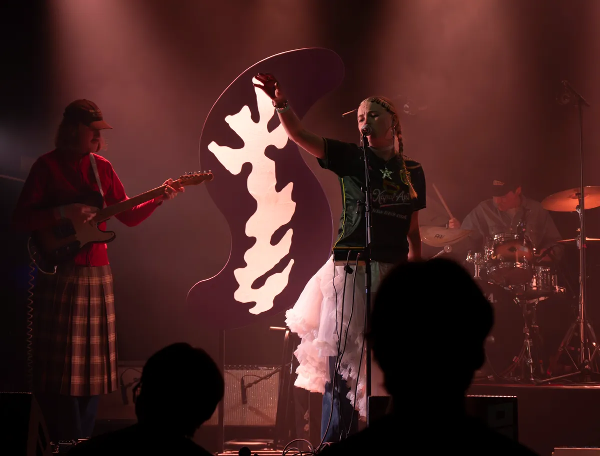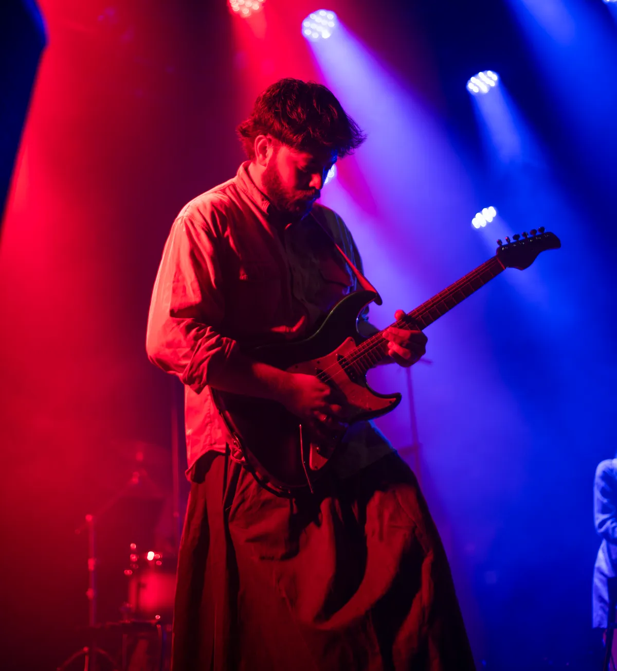 We zijn inmiddels al drie uur onderweg wanneer Post Ella (ArtEZ, Enschede) het podium betreedt met een lichte, speelse energie. Hun alternatieve popliedjes, doordrenkt met elektronische invloeden en creatieve sound effects geven de set iets filmisch, alsof je door een schemerig bos dwaalt. Die sfeer wordt versterkt door de hoge, zachte stem van zangeres Juliana Zijlstra, die moeiteloos boven de lagen van synths en gitaren zweeft. Toetsenist Ben Henneböle gaat volledig op in zijn spel, terwijl drummer Ivo Groen strak doorduwt en gitarist Max Risakotta en bassiste Jasmijn Fiselier het geheel kracht bijzetten. De band is duidelijk goed op elkaar ingespeeld. Hun muziek schuurt meer dan je op het eerste gehoor zou verwachten, waardoor de nummers spannend blijven. Hoewel de zaal wat leeggelopen is, blijft de energie van de band overeind en komen de mysterieuze sfeer en sound effects goed tot hun recht hier in de Next.