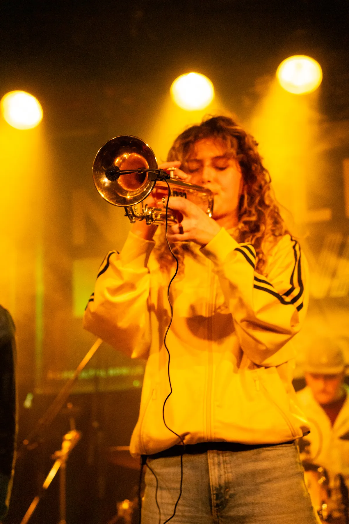 De band speelt strak. De band laat in twintig minuten horen wat ze in hun mars hebben. Wat dat is? Vooral hele goede liedjes die muzikaal goed in elkaar zitten. De jazzachtige bas, de funky trompet, de strakke drums, leuke gitaarpartijen en goede vocalen zorgen voor een goed en compleet geheel. De lyrics zijn speels en metaforisch, zoals in het laatste nummer waarin de zangeres zingt dat een jongen haar mee naar huis vroeg voor een kopje thee (dit ging heel duidelijk niet over thee). Dit nummer heeft tevens een erg catchy refrein: “earl grey, groene thee, English breakfast” en dit werd dan ook lekker meegezongen door het publiek. Dat de band ook een serieuze toon in de lyrics heeft, werd duidelijk in het nummer ‘Als ik een man zou zijn’, waarin zangeres Noa zingt over wat ze zou willen zien als ze een man zou zijn. Dit zingt ze met een notitieboekje in de hand waar de tekst in geschreven staat. In het korte optreden weet de band zichzelf goed te presenteren en het publiek flink enthousiast te maken.