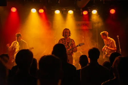 De band Kimberley brengt ons lekkere indierock. De opzet is zoals je die van een rockband verwacht: een drummer, een bassist, en twee gitaristen waarvan er eentje de leadzang doet, en tevens de frontman is. De band treedt op omdat de muziek “veel te leuk is om voor onszelf te houden”. Met een groep fans met Kimberley-stickers op hun shirt en Jaap-stickers (Jaap is de drummer van de band) op hun gezicht, die enthousiast vooraan staan, kan het optreden van de band gaan beginnen.