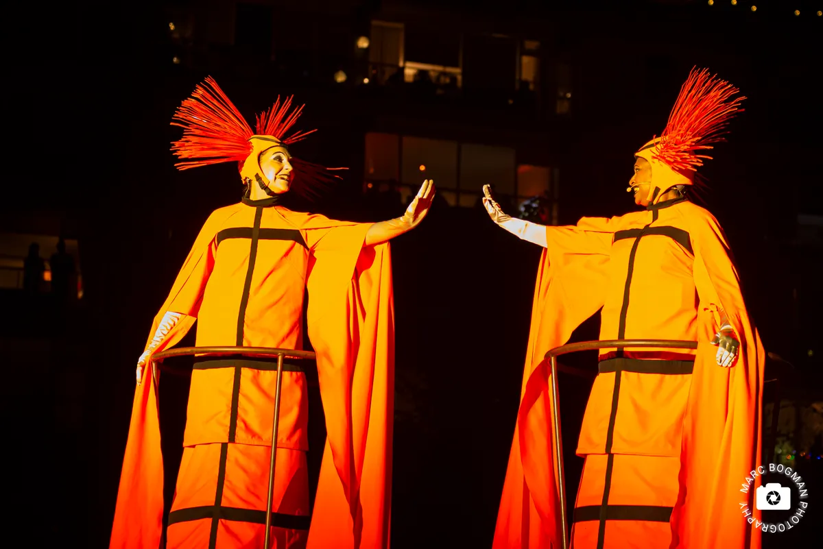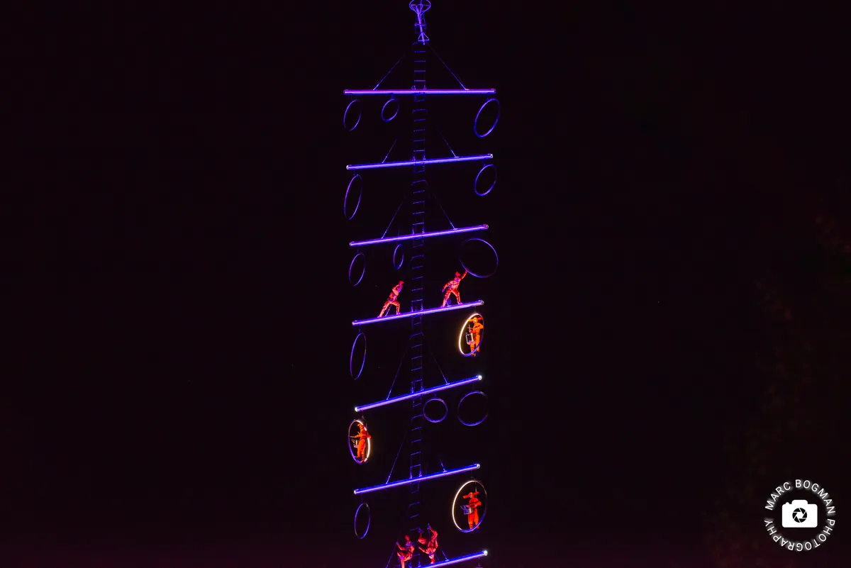 Al vier decennia lang creëert Transe Express indrukwekkende straat- en luchtkunst. Hun werk laat zich niet in één hokje vangen. Het is vernieuwend theater, spektakel en muziek, maar ook beeldende en plastische kunst, pyrotechniek, mechaniek, dans en circus. In Heerlen tonen ze een monumentale, verticale sculptuur: een vergroting van een microscopisch kleine molecule die alle levende wezens met elkaar verbindt. Het Festivalplein is afgeladen wanneer deze “ladder naar de hemel” oplicht en de show begint. Langs de ladder ontvouwt zich het verhaal van de mensheid, langs verschillende fases van de evolutie. Soms bewegen de performers synchroon in een gezamenlijke choreografie, soms botsen ze op elkaar, raken gevangen in hun eigen bubbel of lijken juist los te vliegen langs de ladder. De muziek versterkt dit verhaal met een mix van opera, elektronica, hiphop, zang en percussie. Het resultaat: een visueel spektakel en een prachtige start van Cultura Nova.