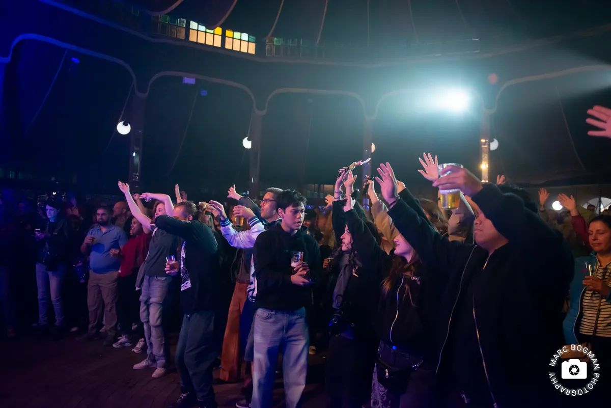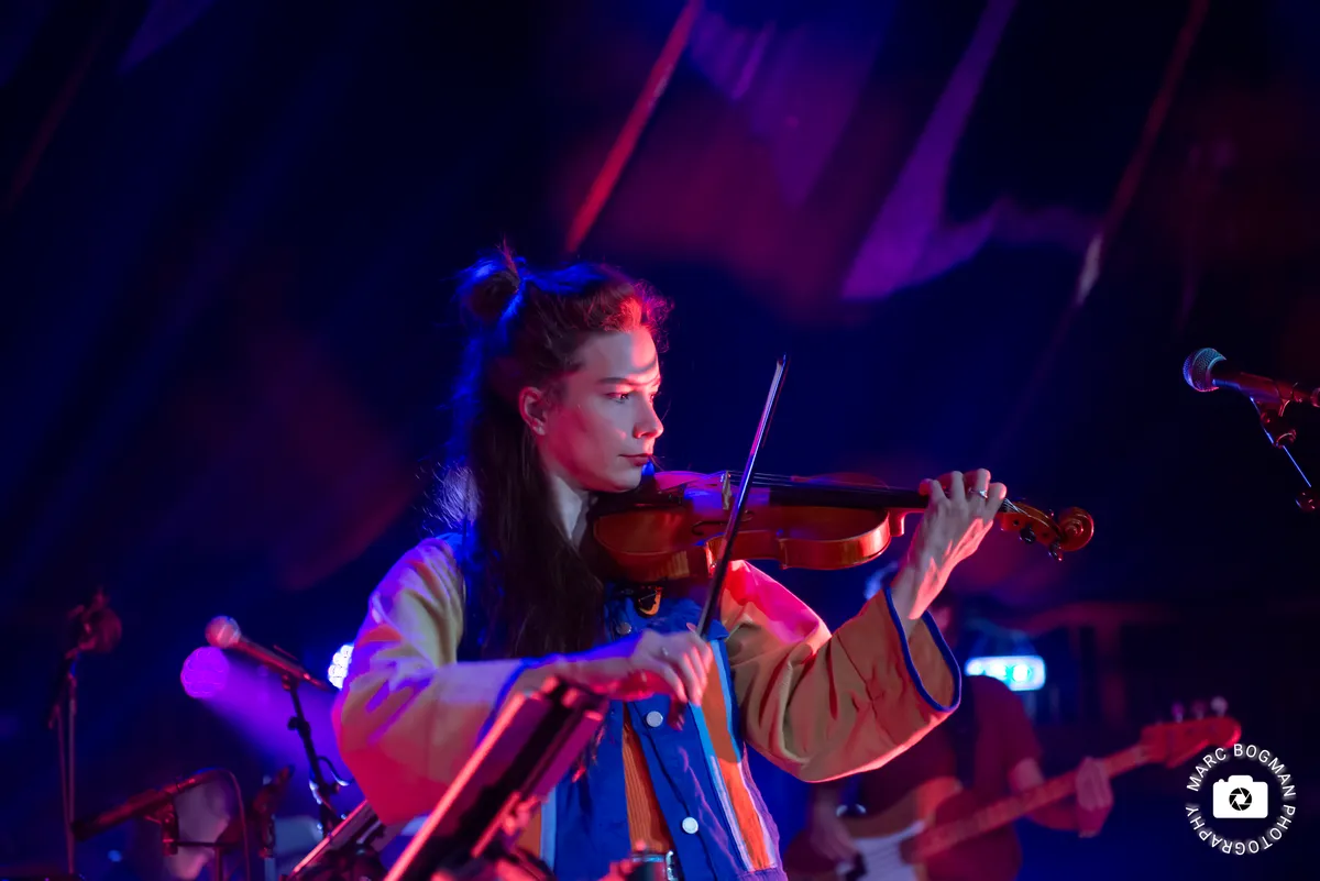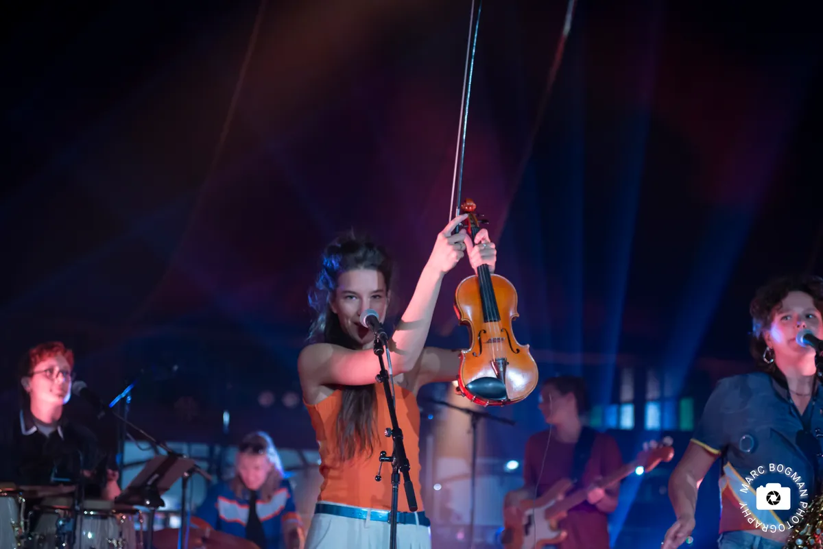 Bij ‘Kwibus’ krijgt de hele tent de instructie om een Sirtaki-achtige dans te doen en het publiek beweegt enthousiast van links naar rechts. De sterke muzikale prestaties vallen op, maar misschien nog meer de positieve energie die de band uitstraalt. Met grote glimlachen en zichtbaar plezier nemen ze het publiek mee en die energie slaat moeiteloos over.