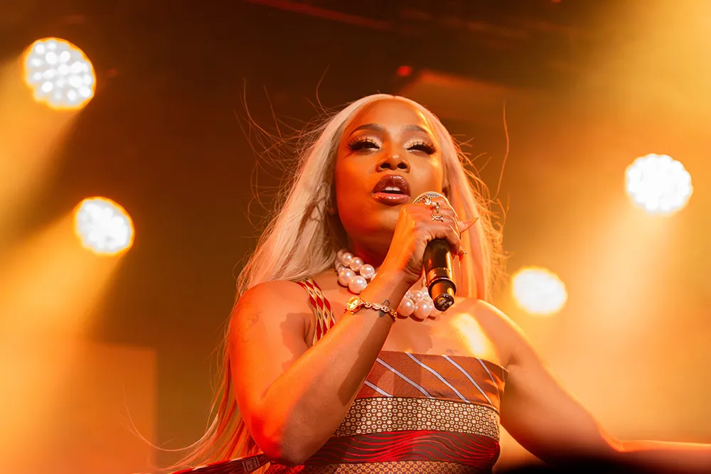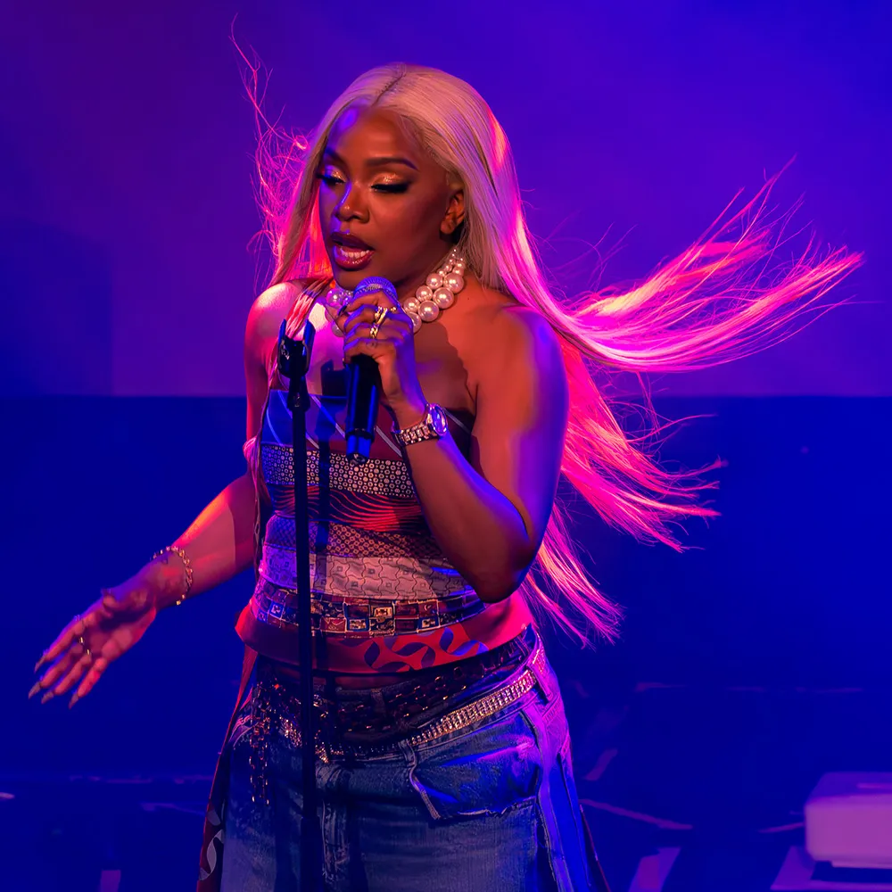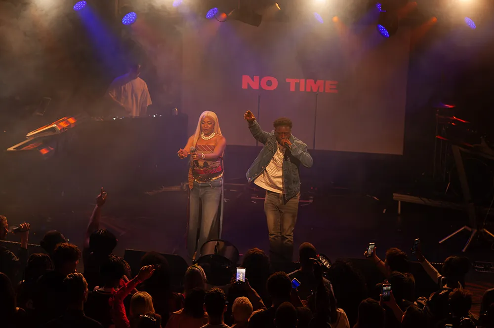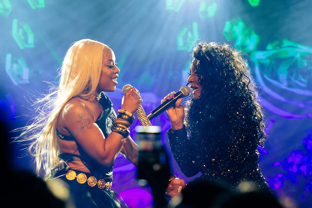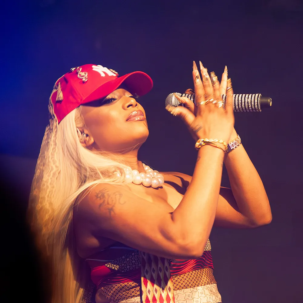 Na gastoptredens van onder andere Hansie en F1rstman, die speciaal uit Dubai is ingevlogen voor hun nummer Squat, schakelt ze abrupt terug. De muziek stopt. De visuals verdwijnen, zij zelf verdwijnt. Haar stem klinkt van achter het podium: ,,Ik heb een paar lichtjes nodig van jullie”, zegt ze zacht. ,,Soms ga je jezelf afvragen of je goed genoeg bent, maar je bent sowieso goed genoeg”. In de zaal gaan lampjes aan. Het wordt stil. Wat volgt is een kwetsbare monoloog over angst, depressie en het belang van zelfvertrouwen. ,,Jouw leven heeft een doel”, zegt ze. ,,Er is iets in jou wat de wereld nodig heeft”. Ze komt terug in een andere outfit, een zwarte lange rok en top, passend bij het beladen monoloog.