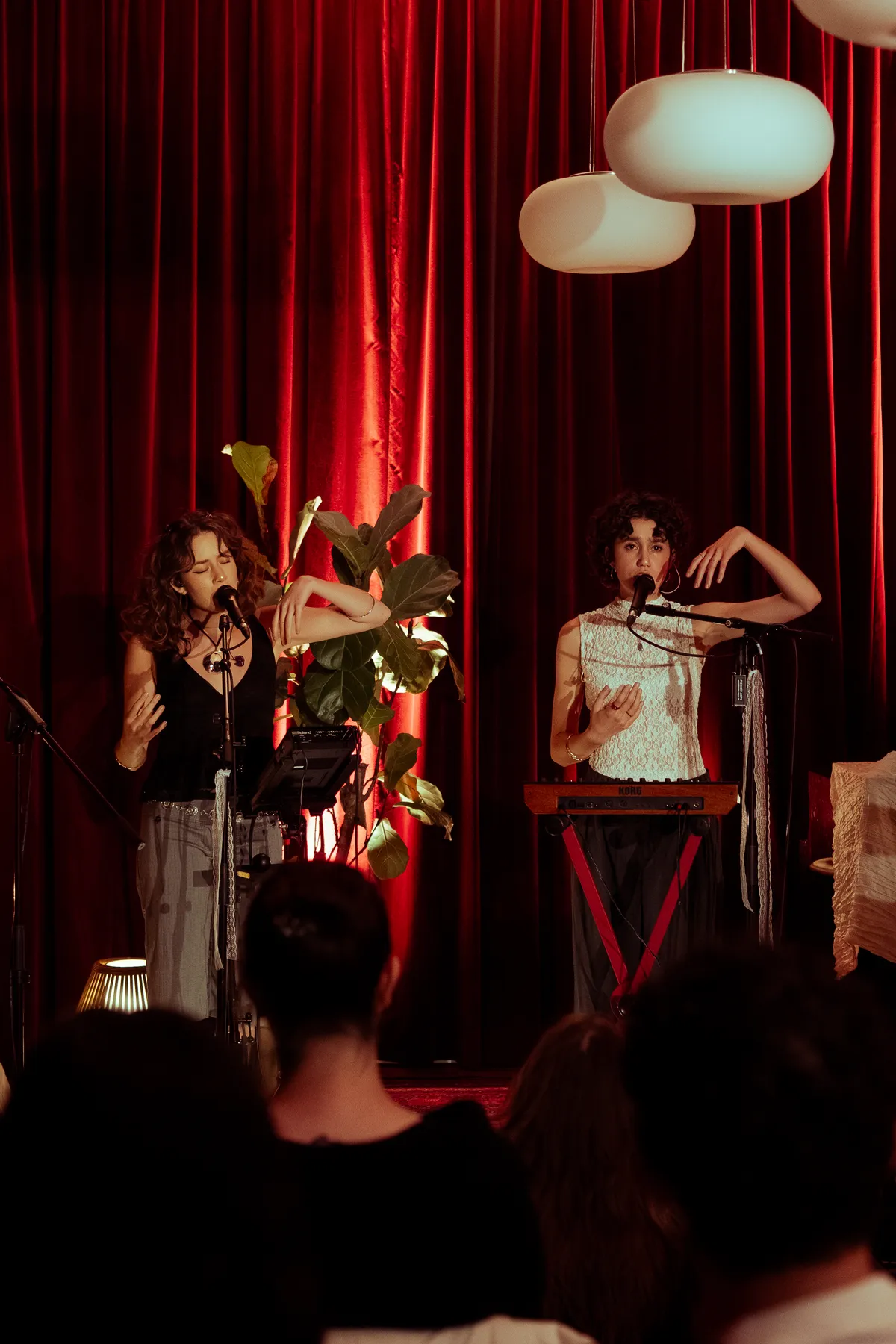 Zowel de kamerhoge gordijnen van het Batavierhuis als de samenzang van Lumï hullen de avond in fluweel. Claudia en Loekie zijn begin twintig, (bijna) afgestudeerd aan Codarts Rotterdam en presenteren in intieme setting voor het eerst enkele nummers van hun debuut EP. “Dit is de eerste keer dat mensen echt voor ons komen’’, opent Loekie dankbaar en opgetogen.