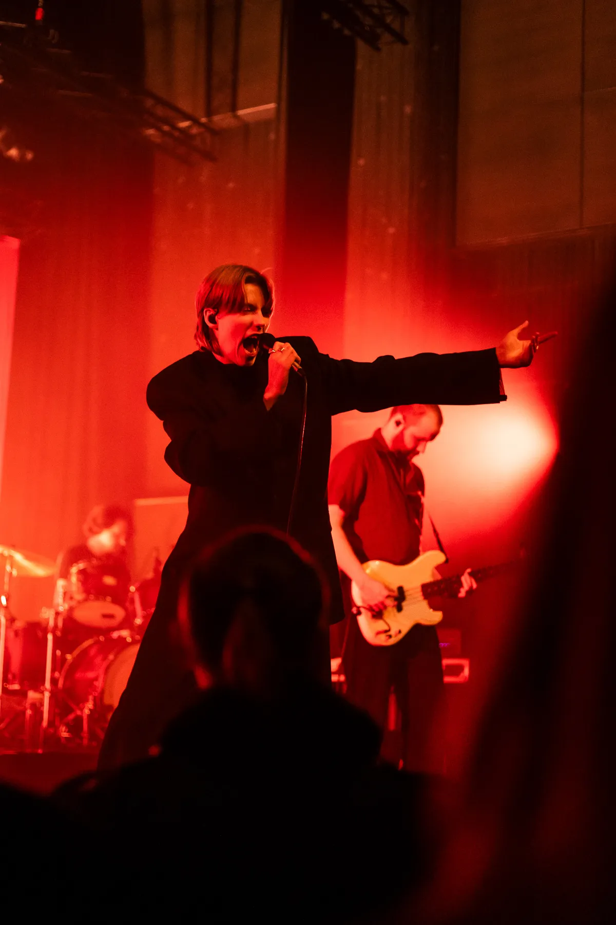 Na een adempauze gaan we door naar Whispering Sons. Ze openen met ‘Balm (after Violence)’ van het nieuwe album The Great Calm. Whispering Sons staat bekend om hun grootse, theatrale geluid, wat op het nieuwste album een hoogtepunt heeft bereikt. De onheilspellende sound en intense manier van zang zorgen ervoor dat we in een donkere sfeer worden gezogen. Tijdens het tweede nummer ‘Something Good’, eveneens van The Great Calm, komt de typische gitaarsound van Kobe Lijnen goed uit de verf. Het plaatje is compleet bij ‘Surface’: muzikaal is het superstrak en de dansmoves van Fenne Kuppens werken aanstekelijk. Nummers volgen elkaar snel op, waardoor we onder een fascinerende betovering staan. Helaas wordt er achter in de zaal veel gepraat, wat echt een spelbreker is. Dat is ook Fenne niet ontgaan. Ze kondigt aan dat ze wat rustigere nummers gaan spelen “dus voor degenen die de neiging hebben om iets te gaan roepen: niet nu”. Gelukkig neemt het publiek dit ter harte en wordt het stiller. Muzikaal steken de nieuwe nummers ontzettend goed in elkaar. Tijdens ‘Still, Disappearing' schakelt bassist Bert Vliegen moeiteloos over op een saxofoon. Mede door deze toevoeging en de intensiteit van Fenne lijkt het geheel op een nummer van Nick Cave. Naar het einde schakelt Whispering Sons een versnelling bij en gaat ook het publiek los op nummers als ‘Alone’ en slotstuk ‘Heat’. Whispering Sons is uniek in zijn soort en live blijft de band boeien. Met recht één van Belgisch grootste namen en de perfecte afsluiter (en soundtrack) voor de Donkere Dagen.
