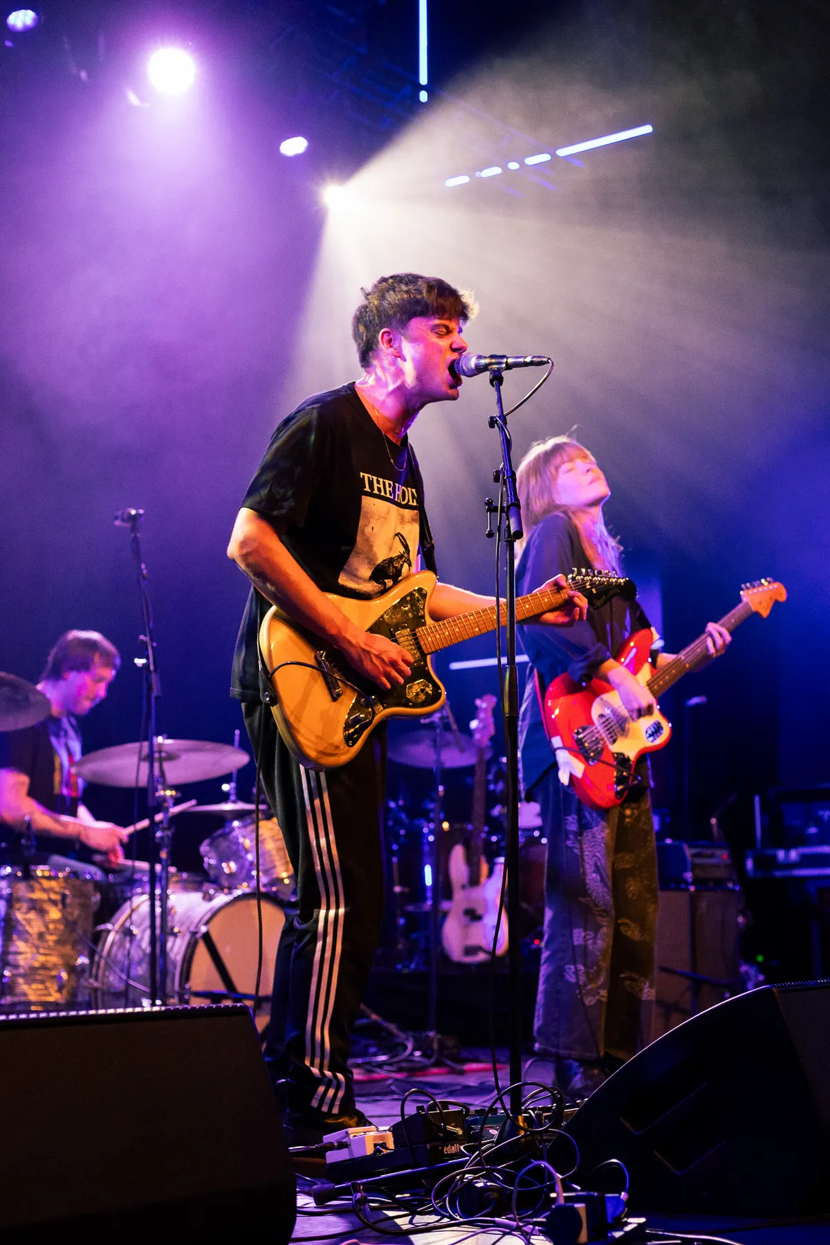 We lopen terug naar Grenswerk voor Marathon. Marathon is een energieke post-punkband uit Amsterdam, die een mix van shoegaze en rauwe punk combineert. De show start en ze vliegen erin met een gestrekt been. Helaas zijn er wat problemen met het geluid, waardoor na het eerste nummer een soundcheck plaatsvindt. Vooral de zanger is duidelijk geïrriteerd. Als alles weer op orde is, vraagt de drummer ietwat twijfelachtig: “Gaan we gewoon door?” Het publiek heeft er zin in en beantwoordt deze vraag door luid te joelen en te applaudisseren. Marathon heeft het begrepen, strekt de benen verder uit en gaat los. Vooral zanger Kay en bassiste Nina komen plaats tekort. Het scheelt niet veel of Nina raakt Kay met haar gitaar in zijn gezicht. De rust keert een beetje terug tijdens ‘Tired’ dat goed wordt ontvangen. De combi van shoegaze en rauwe punk zorgt voor flink wat tempowisselingen tijdens nummers, waardoor het geheel ontzettend boeiend blijft om naar te kijken en te luisteren. Klap op de vuurpijl: afsluiter 'Mind'. In april 2025 dropt Marathon een nieuw album. We verwachten dat ze tegen die tijd klaar zijn voor grotere podia en een drukke festivalzomer tegemoet gaan.
