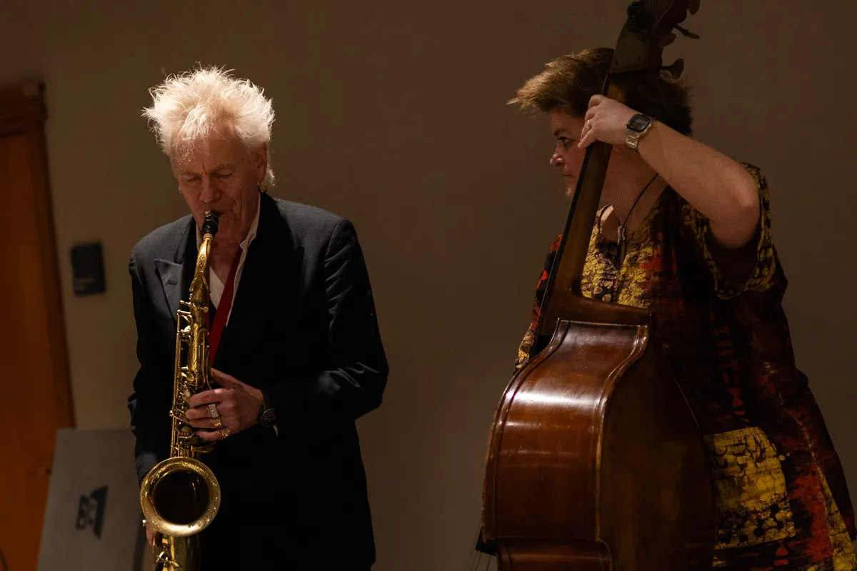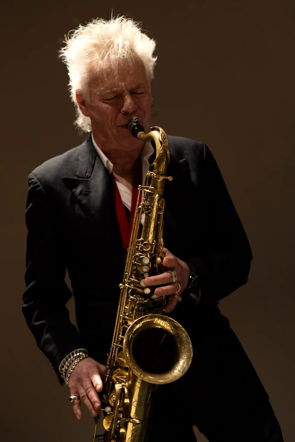 We zijn de diepte van Inez’ boodschap nog aan het overpeinzen als de nieuwe cultuurwethouder Van Noort het podium op komt om de week officieel te openen door de band aan te kondigen. Maar niet voordat ze van Fons en Inez een Blues- en Jazzweektrui en een bos bloemen heeft ontvangen. Ook vanuit de wethouder de uitgesproken wens dat deze week ertoe leidt dat we elkaar ontmoeten en met elkaar verbinden. Wij denken dat van muziek genieten al best mooi is, maar we gaan ons best doen bij de eerste act van De Leidse Blues- en Jazzweek: Boris van der Lek, de bekende tenorsaxofonist.