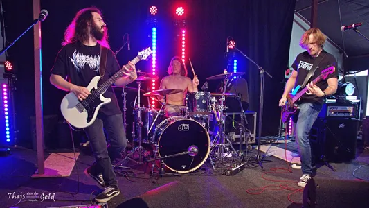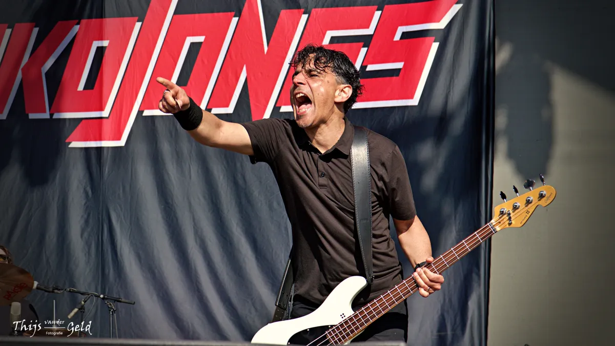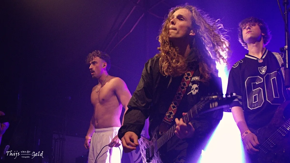 De frontman, shirtloos, glimmend van het zweet, ogen vol vuur, stuitert als een bezetene door de Kapel. Het lijkt alsof hij de muren wil opvreten. Elke riff snijdt, elke baslijn dreunt door je ruggengraat, en de drums houden geen ruimte over om stil te staan.