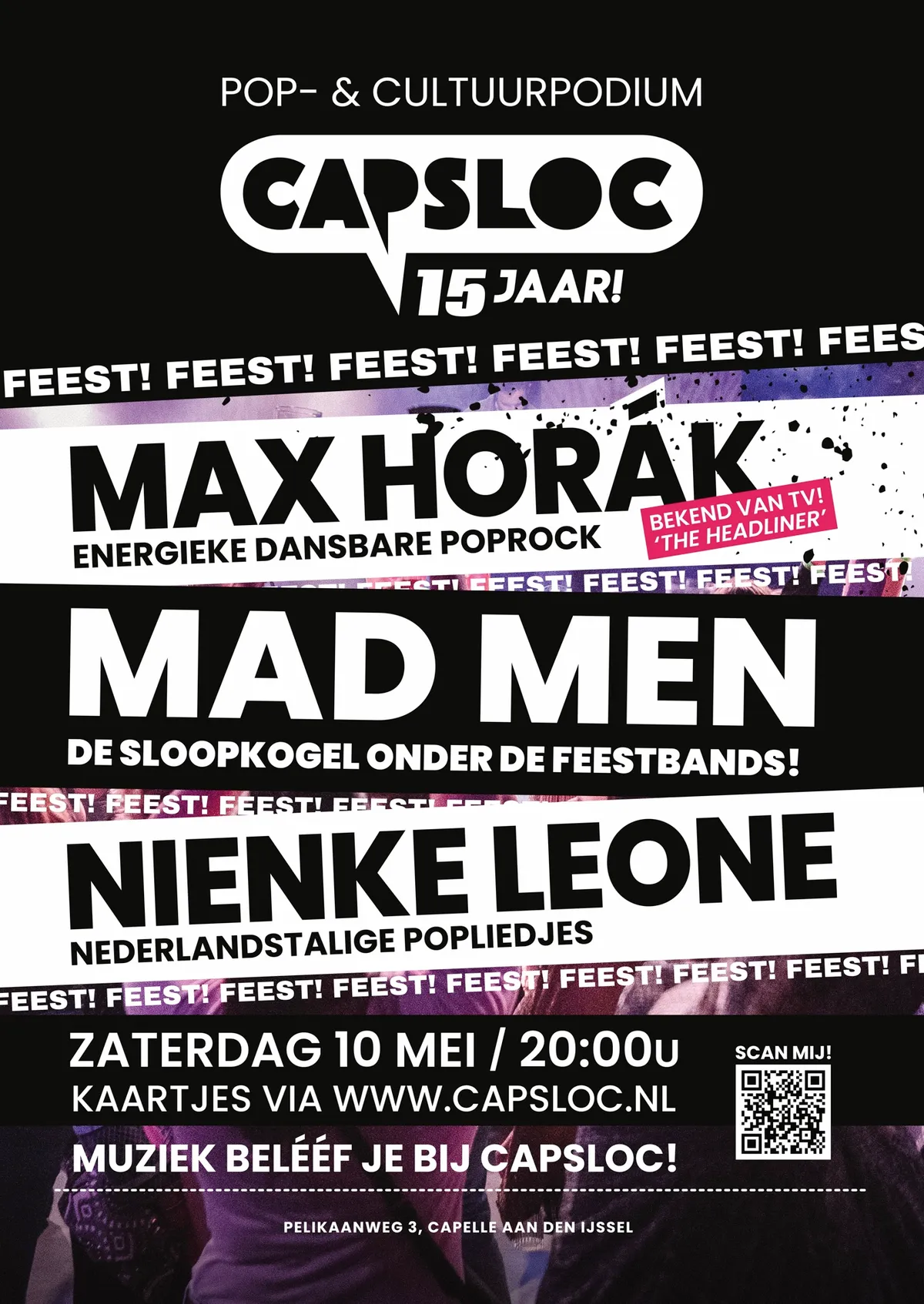 Het feest barst zaterdag 10 mei om 19:30 los. Er zijn nog kaartjes verkrijgbaar.