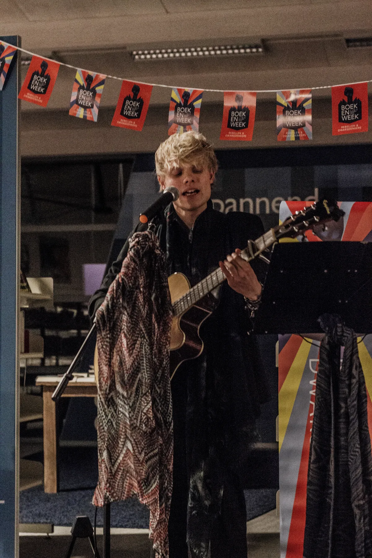 Voor zijn optreden kondigt Dineke Meijering de jonge poëet aan. Ze refereert hierbij naar het thema ‘rebellen en dwarsdenkers’ van de Boekenweek, ter ere waarvan Corjanus optreedt in de bieb. Meijering noemt dat poëten zeker onder de categorie ‘dwarsdenkers’ vallen. Daarnaast sprak de manier waarop Corjanus muziek en dichtkunst aan de man wil brengen haar wel aan.
