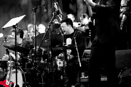 “De bijzondere aanpak, energie en sound van Licks & Brains creëert een hele nieuwe sfeer rondom mijn muziek”, zei meestertrompettist Eric Vloeimans over zijn samenwerking met big band Licks & Brains. Donderdag 23 mei stonden de achttienkoppige band plus solist samen in de grote zaal van De Nobel. Ondanks dat de hoeveelheid publiek doet vermoeden dat dit concert in de grote zaal is vanwege de podiumcapaciteit, mag het de pret geenszins drukken - kapitein Vloeimans neemt ons allemaal mee op avontuur, met Licks & Brains als scheepsbemanning.