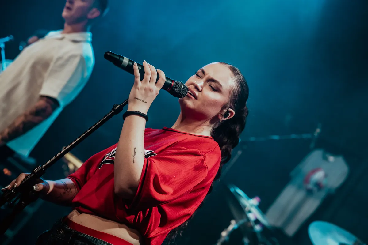 De energie die bij de eerdere act te voelen was is bij de Grote ook herkenbaar. Door de goedgetrainde stem van zangeres Daya Hendrix en de keyboardklanken van toetsenist Resin Sminia klinkt hun sound echter iets persoonlijker, meer down-to-earth. In nummers als 'Alleen Voor Mij' en 'Altijd' komen die aspecten goed naar voren, zo goed zelfs dat een aantal leden in het publiek de zaklampen van hun telefoons heen en weer zwaaien. Terwijl in het nummer 'Niet Dat Ik Het Zie' er door gitarist Marijn Walraven een langdurige, funky solo gespeeld wordt, is er in hun meest gestreamde lied 'Kijk Mij Eens Aan' meer ruimte voor het popgedeelte. De band kan eenvoudig switchen hierin en hebben er kennelijk lol mee.