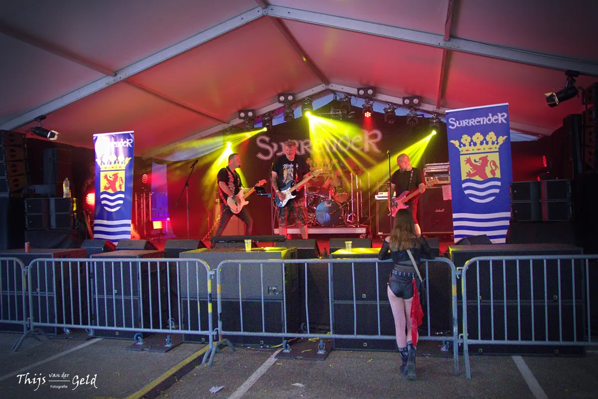 Surrender is dé dialectrockband van Zeeland. Ze rocken er stevig op los terwijl het publiek geniet van een bakje friet. Later treden ook Hardball en White Heat op. De avond wordt knallend afgesloten met coverbands The Oscure en Slash 'n Roses. Onze fotograaf Thijs van der Geld was erbij.