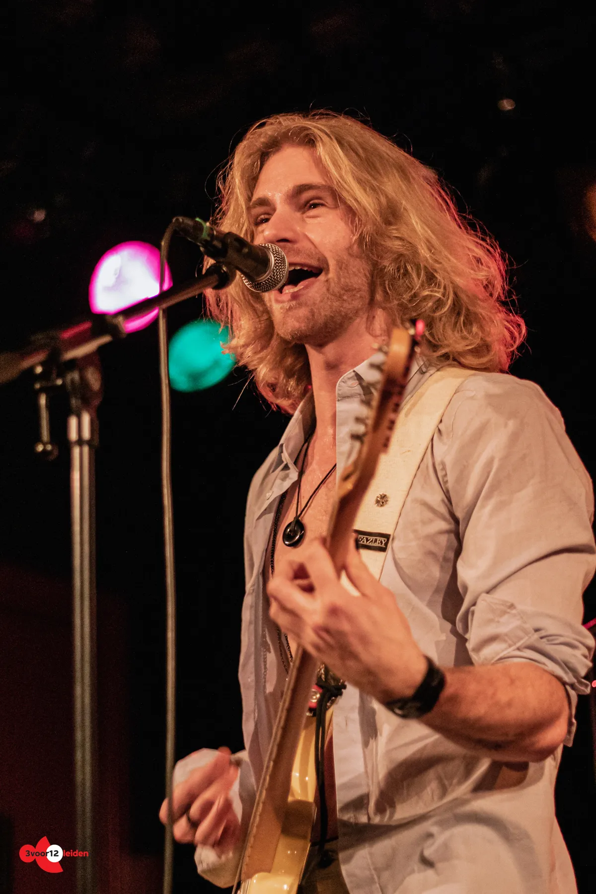 STAPLERS is een gloednieuwe Leidse alt-rockband. Drummer Stan en bassist Rinus zijn ervarener, maar zanger/gitarist Merlijn staat vanavond pas voor de vierde keer op een podium. Niet alleen met deze band, maar überhaupt. Het is knap wat hij nu al kan: hij durft zich helemaal te geven en laat zijn emoties zien in mimiek en in zijn stem. Hij zoekt nog niet veel interactie met het publiek, maar dat gaat vast komen. Stan leeft enorm mee met de muziek achter zijn drumstel. Hij doet een paar keer een trucje: hij laat tijdens het spelen zijn drumstok achteloos over zijn wijsvinger draaien, grijpt hem en speelt door. Hij vraagt tussen nummers door aan Merlijn: “Is dit het moment dat we de cliché’s doen?” Merlijn laat zich niets wijsmaken: “Heb je je Podiumshit voor dummies bij je, Stan?!” Hun muziek klinkt als een mooie mix tussen The Raveonettes en de Arctic Monkeys, vooral ‘12’ klinkt als een betere versie van de Britten. Hun set is de uitstekende EP ‘tHis Is stApLeRS’, al klinken ze live net wat minder energiek dan daar. Dat geeft niet, want STAPLERS is een lokaal pareltje dat snel in de schelp groeit – hou ze in de gaten!