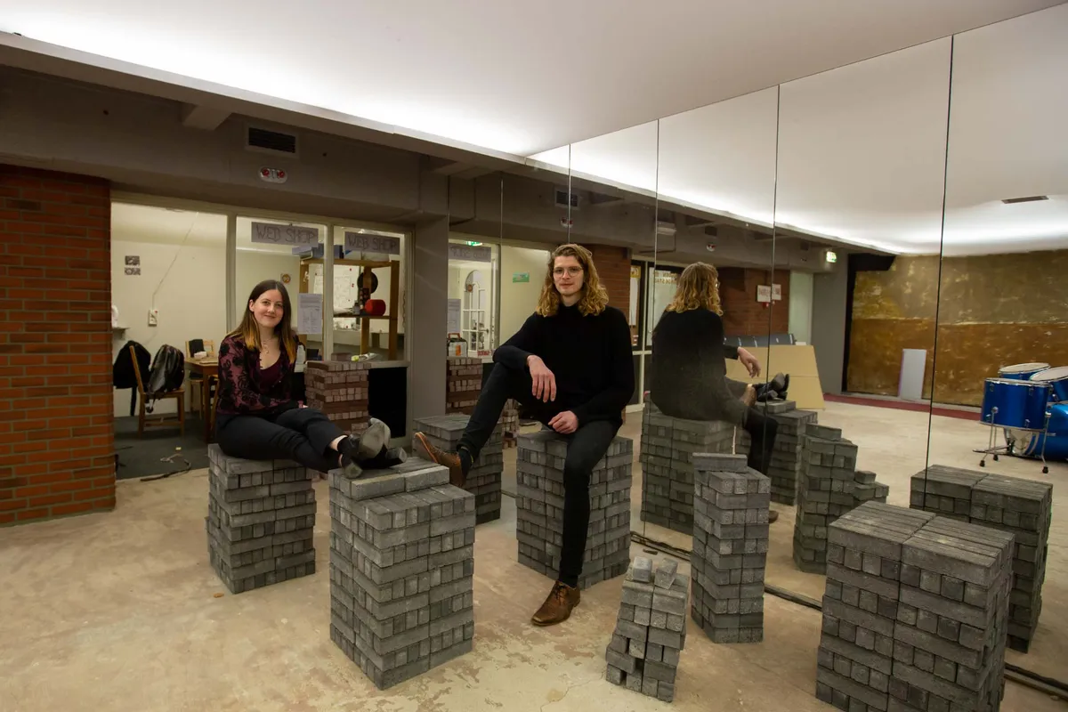 Koen: ‘’We stellen de ruimtes namelijk ook open voor buitenstaanders om hier te repeteren omdat we echt een culturele broedplaats willen creëren. Voorwaarde is dan dat je dat goed op elkaar moet afstemmen zodat je allemaal gebruik kunt maken van de ruimtes. En er zijn ook andere obstakels zoals het hebben van geen internet en geen bereik.’’