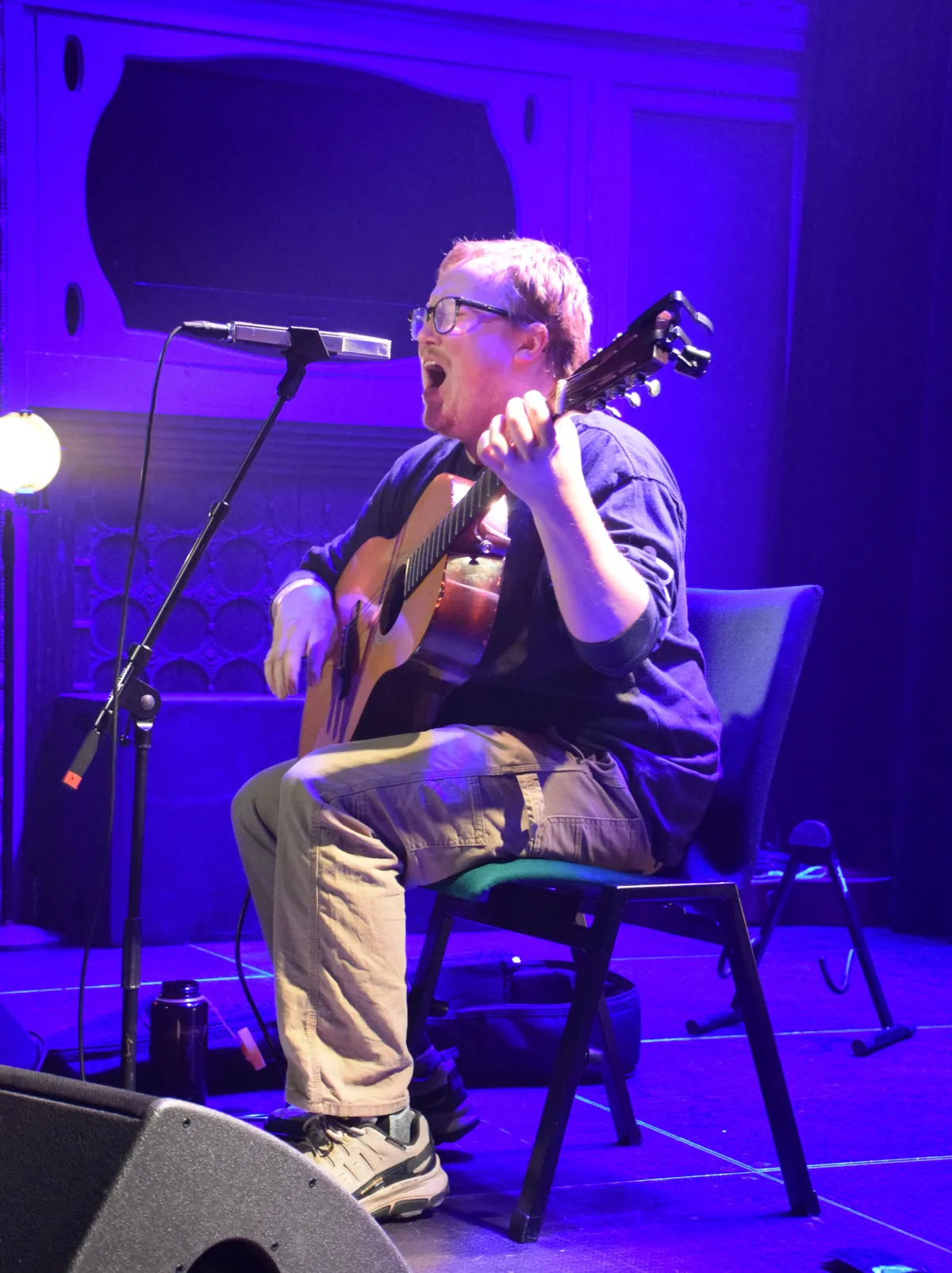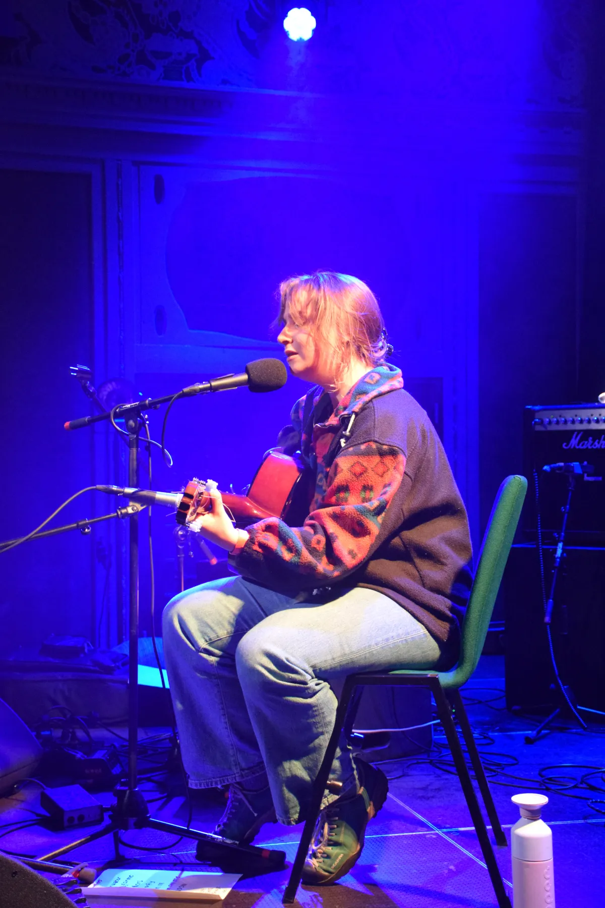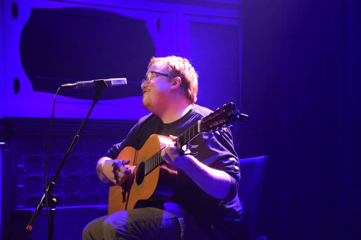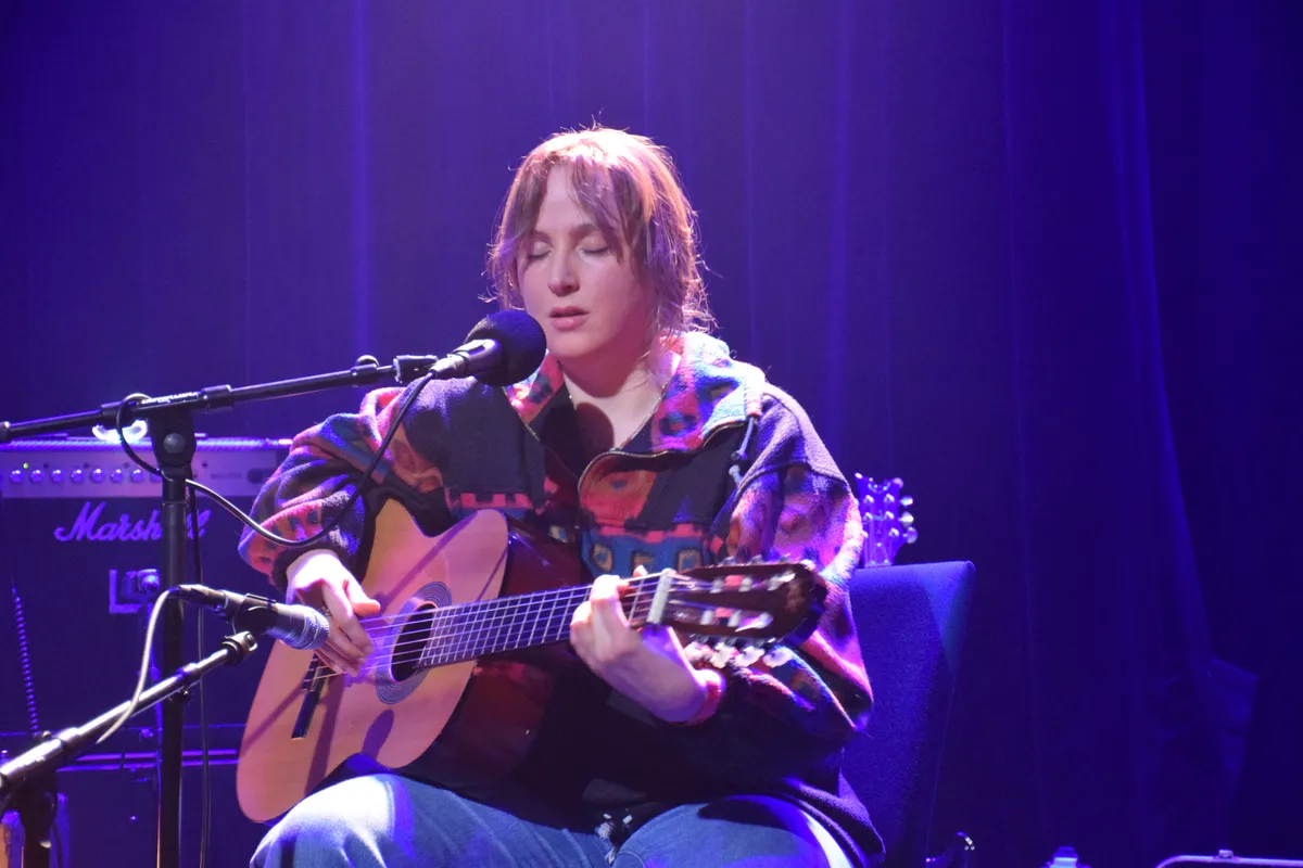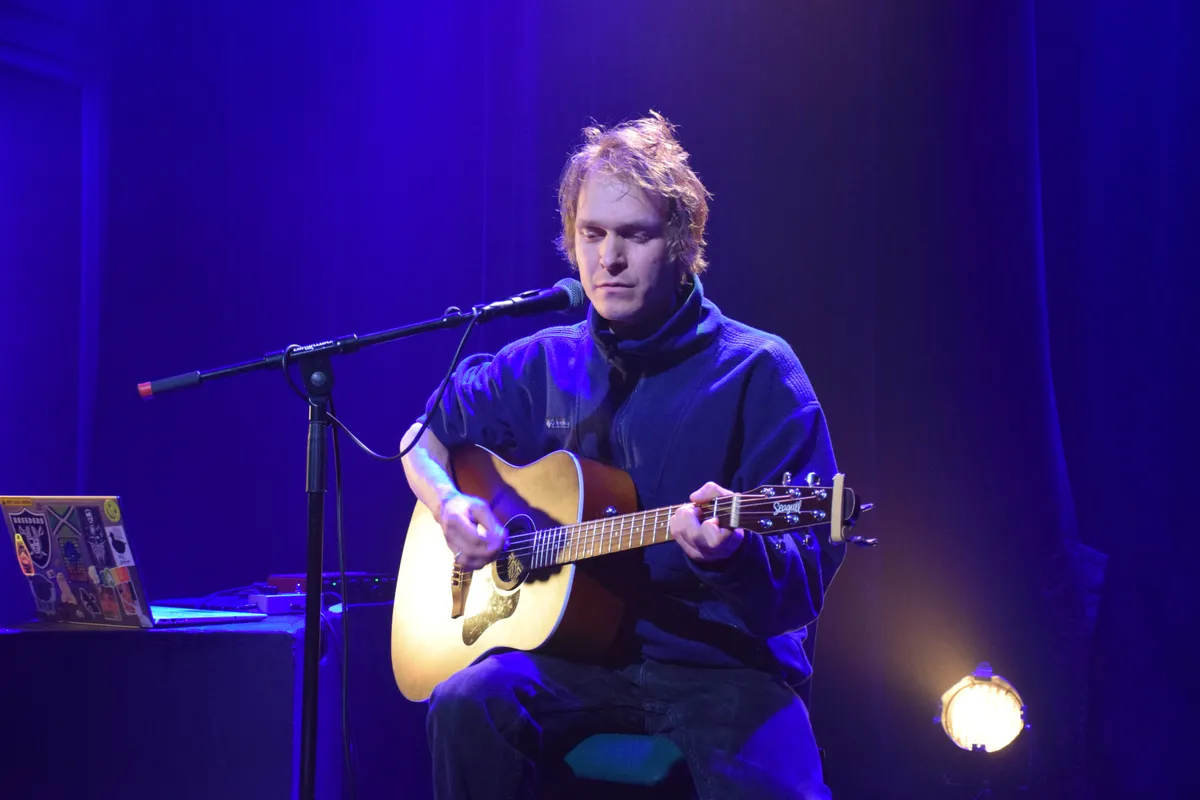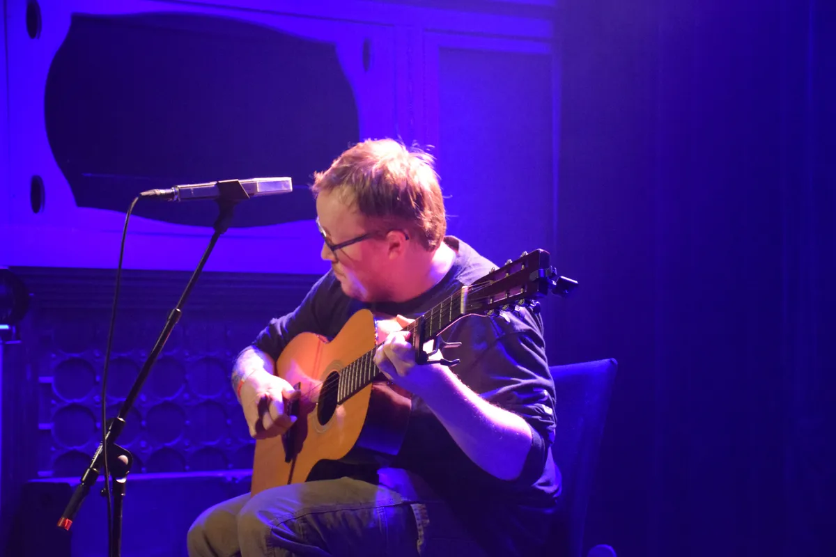 Nimue trapt af (artiestennaam van Felice Parqui), een jonge vrouw met haar elektrische en Spaanse gitaar en prachtige stem waar een toffe diepte in zit. Je kunt haar kennen van haar band MANNERISMS, maar ook in haar eentje is ze een act om stil van te zijn. Subtiel gitaarspel, met veel eigen nummers en soms een cover (‘You Can Call me Al’ van Paul Simon, maar dan met haar eigen gevoelige signatuur). Grappig is de nonchalance waarmee ze op het podium zit, met een enorme fleecetrui, spijkerbroek en wandelschoenen. Haar stem doet alles al.