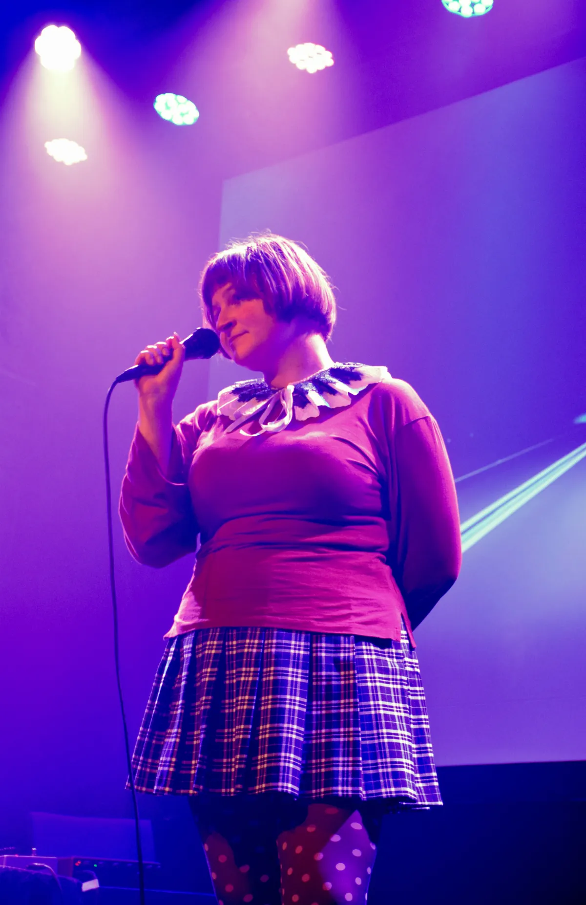 De derde act Skate Bush is redelijk af hoc gevraagd om Shane te vervangen. Lisa Otten heet ze in het echt, haar eerste plaat is net uit bij Waaghals Records en ze speelt vanavond voor de derde maal ooit. Ontwapenend is de vorm die ze kiest: extravagant gekleed (“ik lijk wel een clown!”), met haar laptop als instrument en meezingend met de backing tracks van een aantal Engelstalige nummers van haar plaat én een aantal gloednieuwe Nederlandstalige nummers. Wat een mooie stem heeft zij. En ondanks dat haar optreden (onbewust of bewust?) wat chaotisch is (“hoeveel nummers doe ik nog? Twee. Of, nee, drie. Ach, we zien wel... Oh wacht, nu ben ik ‘m kwijt!”) heeft Lisa zo’n charme dat ze bij alles wat ze doet de lachers op haar hand heeft. Cabaret zou haar ook niet misstaan.