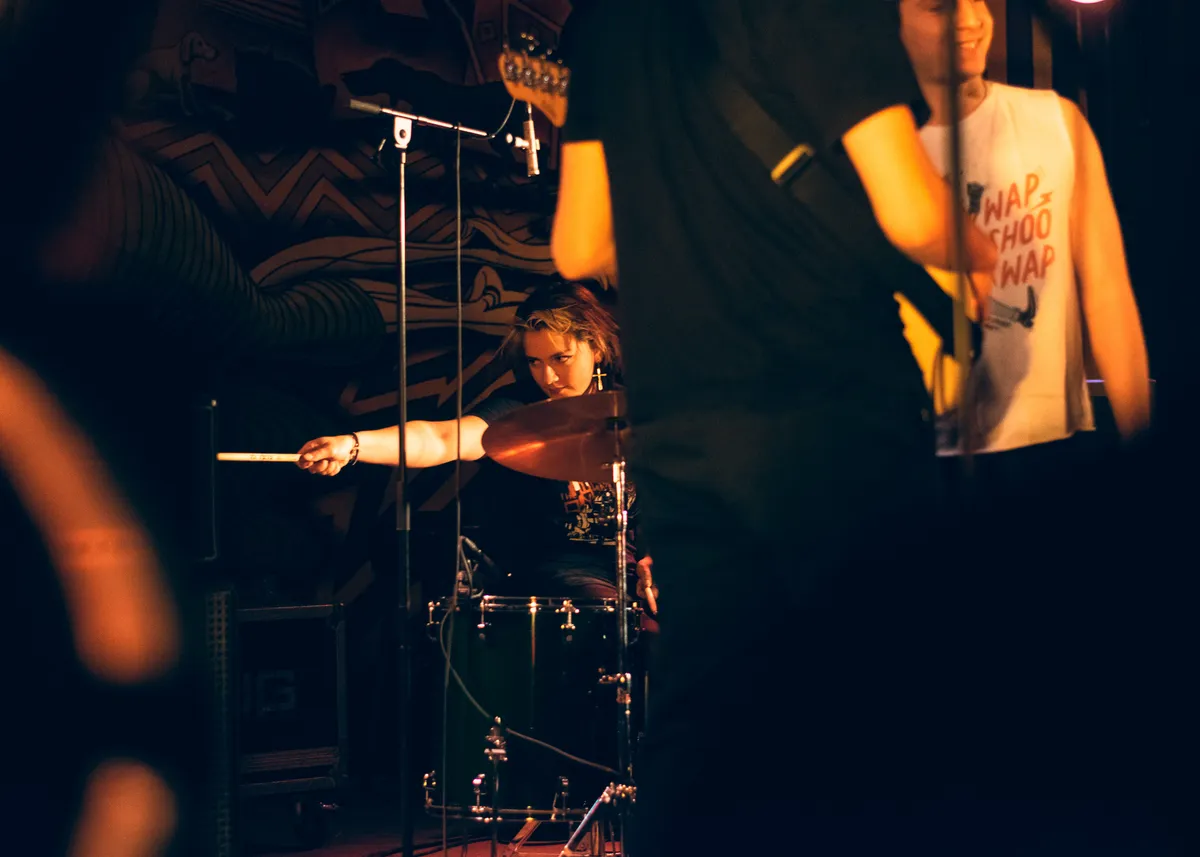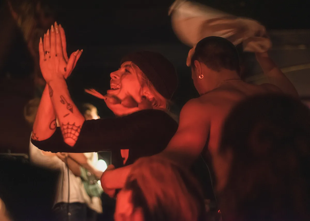 Bij de eerste tonen van de klassiek raggende punkgitaren is het publiek weer weg. De toch al stampend volle tent drukt naar de zijkanten, nu het midden territorium van de moshpit is geworden. Gelukkig ligt de beschermende bierlaag al op de vloer. De band speelt simpele 4-akkoorden nummers, waar ze over gaan verstaan we niet helemaal. Twee jonge meisjes vooraan in het publiek zijn de weg kwijt, ze kunnen niet anders dan dansen en schreeuwen om aandacht van de jongens en misschien ook het meisje (drumster) op het podium. Tijdens de set nodigen The Covids founder Gilian uit op het podium en samen werken ze door nog een nummer heen. Dat ze blij zijn om te spelen is duidelijk. Een band die ontstaan is door de pandemie heeft dat natuurlijk nog niet zo veel kunnen doen.