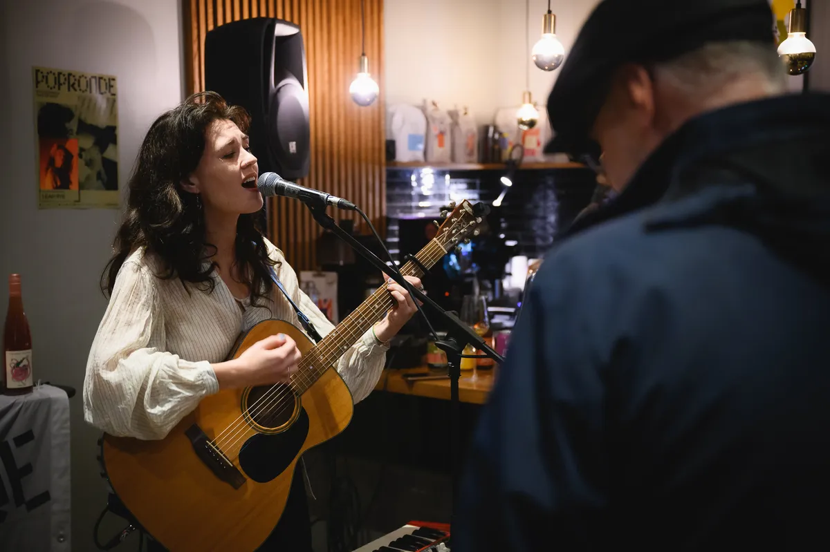 Brewbar & Kitchen Sip First stroomt vlak voordat Leah Rye begint steeds voller. Bij het eerste nummer is er nog ruimte om gezellig te gaan zitten, op dezelfde hoogte als de zangeres achter haar keyboard. Daarna is het al staan en nog wat later gaan de stoelen aan de kant. Typisch een leuke Popronde sfeer. Leah heeft violiste Esther mee, die ook meezingt wat zorgt voor een mooie tweede stem. Ze speelt vol trots de nummers van haar album ‘Symbiosis’ dat in oktober verscheen. Nummers als ‘The Observer’ en ‘Sit Down’, dat handelt over het onveilige gevoel dat veel vrouwen ervaren (met waarschuwing voor de videoclip), een sterk nummer dat uitmondt in een finale met felle gitaren en violen. Los van de serieuzere thema’s blijft het wel een fijne sfeer bij Sip First, waarbij mensen in en uit blijven lopen. (DH)