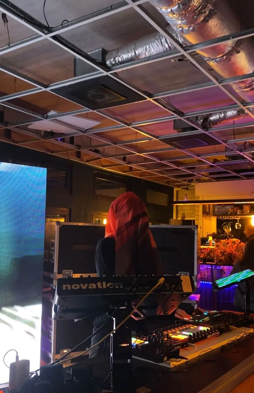 Waar treedt Subfiction nou op? Buiten lopen een paar verdwaalde toeschouwers rond en zien enkel boven in een gebouw gekleurde lichten schijnen. Het optreden vindt plaats in The Office en dat is voor mensen die niet uit Breda komen nog wat lastig te vinden. Na een wankele liftreis omhoog staat alles toch echt klaar voor de volgende veelbelovende act. Een groep mensen heeft zich gevormd, maar er staat één figuur tussen die mysterieuze blikken krijgt. Met een gekleurde sluier over het hoofd loopt de schim naar de set toe en felle visuals lichten achter Subfiction op. Met snelle bewegingen komen er vreemde, dansbare geluiden uit het apparatuur. Het publiek is eerst nog wat verlegen. Het is zeker dat binnen enkele minuten de menigte in The Office meedoet en zich mee laat nemen in de wereld van Subfiction. Hoe die wereld eruit ziet? Denk maar eens terug aan hoe je als kind nadacht, of misschien nu nog, over hoe de toekomst eruit zou zien. Met vliegende auto’s en stemmen als robots, waarvan er één ook te vinden was bij het optreden. De muziek en de visuals zorgen voor dit futuristische optreden. Snelle breakbeats tot lang uitgerekte synthesizers, The Office wordt even omgebouwd tot het kantoor van de toekomst. (FC)