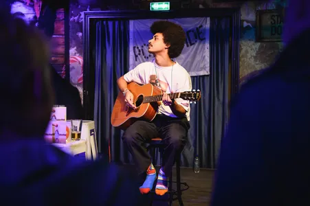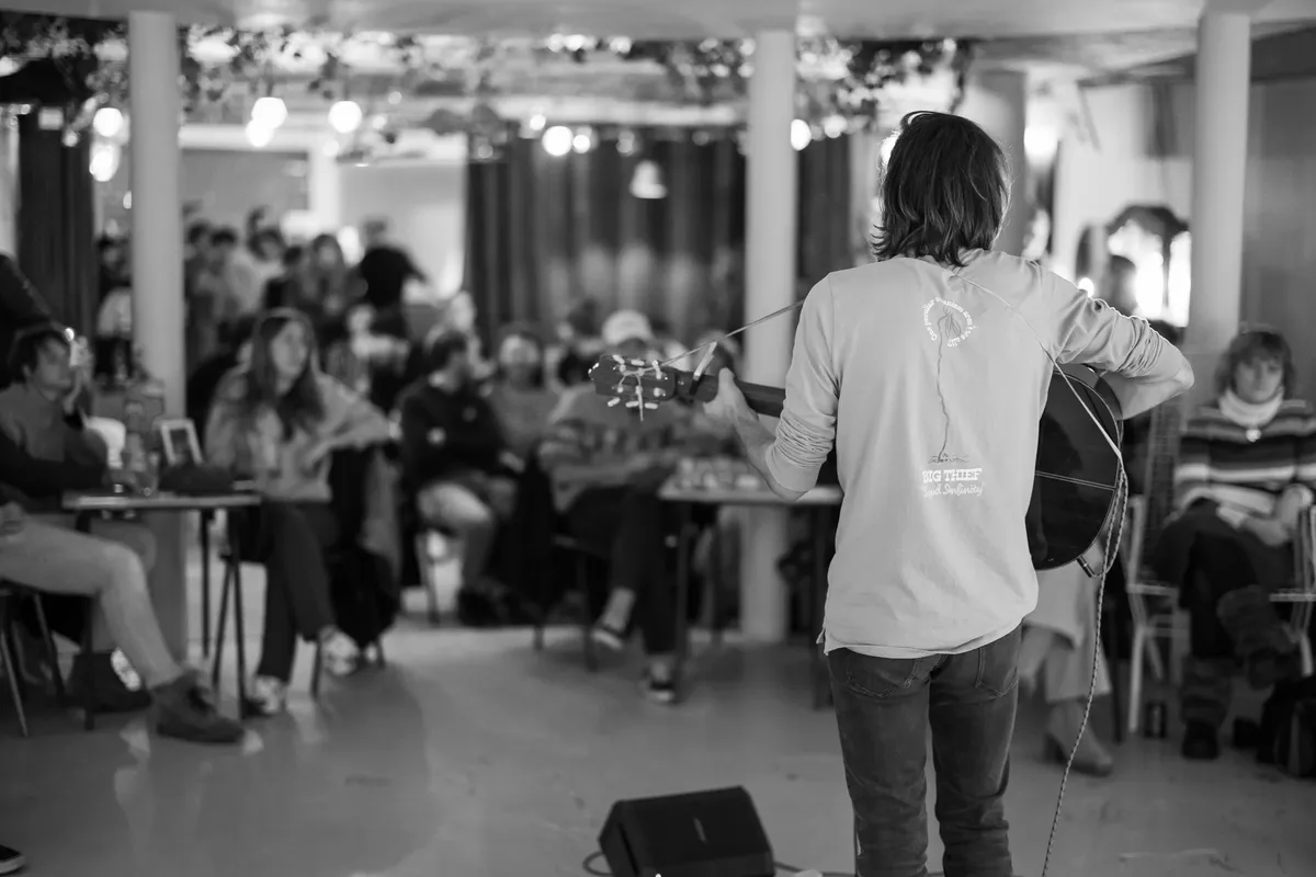 Cloud Cukkoo, dat is Jori van Gemert en ze speelde met haar band al eerder in Breda. Vanavond in Holy Moly houdt ze het kleiner dan bij eerdere Popronde optredens in bijvoorbeeld Haarlem of Tilburg. Enkel gitarist Jeremy is mee. Deze intieme setting in de toch grote zaal van Holy Moly past prima, zegt Jori: “we kunnen lekker lullen over de muziek.” Alsof ze weet dat Holy Moly hier vaak stand-up shows houdt. Jori vertelt open de verhalen achter de songs op haar EP ‘Half-Forgotten Dream’ die in oktober verscheen. Verhalen over jezelf kunnen zijn en met een boodschap, zoals het prachtige ‘Alice’ dat lang blijft hangen. Haar stem is sterk en Cloud Cukkoo kan ook zonder band de aandacht goed vasthouden, de verhalen van Jori voegen in deze setting zeker wat toe. (DH)