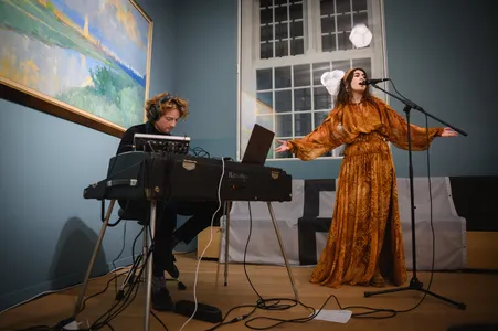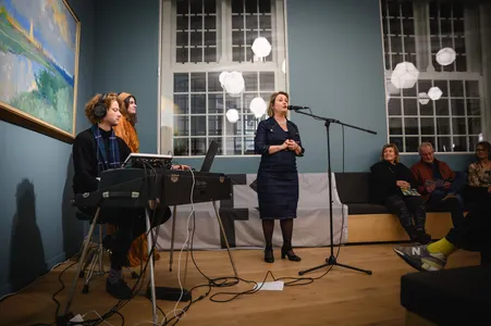 Wethouder Inkomen en Cultuur Marike de Nobel opent om 19.00 uur de Popronde Breda in het Stedelijk Museum. Ze kondigt meteen de eerste act aan: Djoeke. Zoals vaak past de act bij het podium en dat geldt voor Djoeke ook helemaal: de zangeres heeft een heldere, mooie stem waar ze veel kanten mee op kan in de statige, open ruimte. Door de mimiek en bewegingen krijgen de donkere, langzame songs een extra lading. De cover van Lana del Rey’s ‘Yayo’ past naadloos in haar repertoire. Ze heeft Willem op Rhodes en samples mee als begeleiding. Echt een act om mee te onthaasten en met open blik je Popronde te beginnen. (DH)