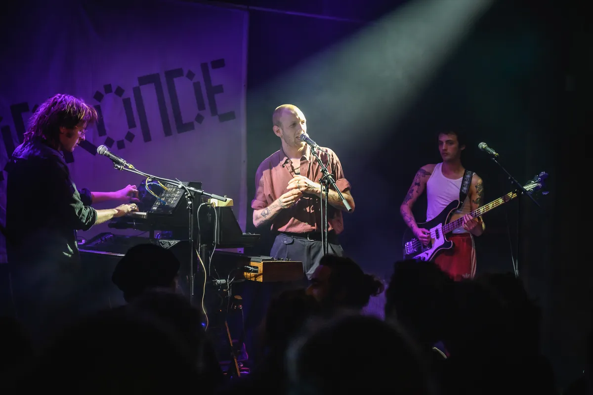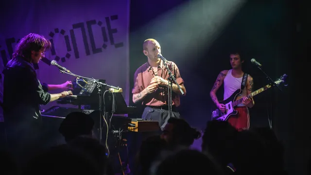 In Mezz mag Dorpsstraat 3 de titel van 3voor12 talent bevestigen. “Dagen vliegen langzaam langs mij heen,” zo klinkt het al meteen repetitief, stoïcijns door de kleine zaal. Donker, droog en meerstemmig. Deze Amsterdamse band grijpt graag terug naar de synthwave en postpunk van de jaren tachtig en daar is niks vrolijks aan. Het is wel heel cool, met de vervormde twaalfsnarige gitaar en toetsen/knoppenmachines in het midden. Of dat hypnotiserende baslijntje in ‘Priester’. Bezwerende beats zoals er velen zijn. En de teksten zijn vrij cryptisch, of juist metaforisch? Naast twee recente EP’s maakte de band nog een toffe cover van ‘Dracula’ van ZZ en De Maskers. Alles opgeteld, Dorpsstraat 3 wil je live zien. (DH)