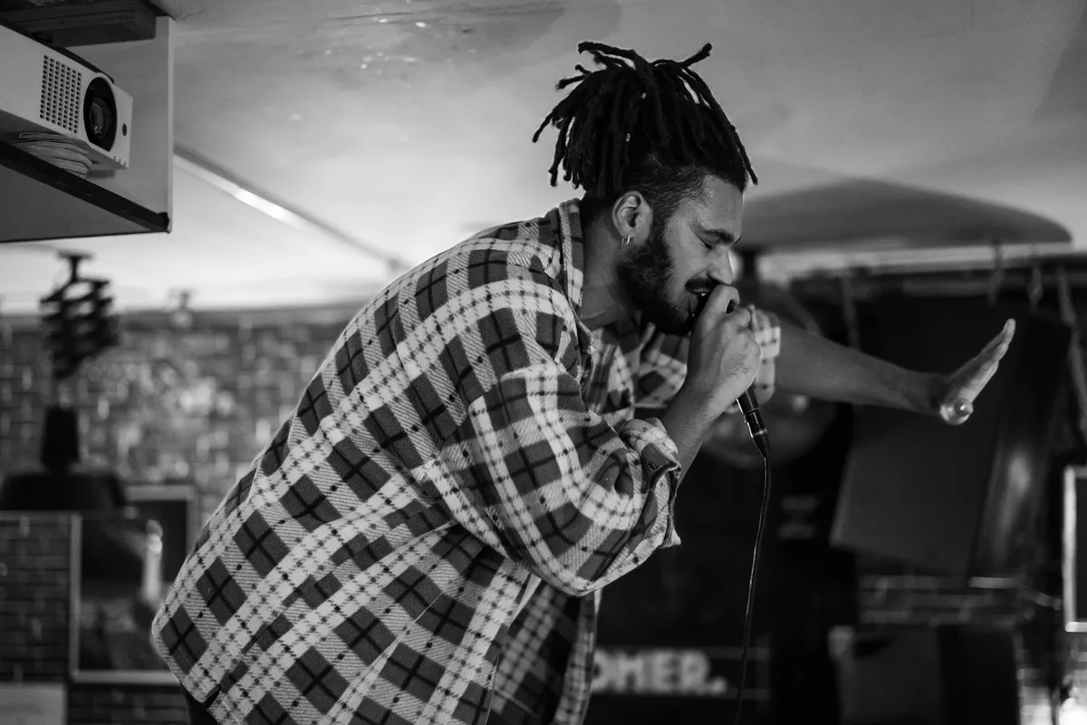 Waar het optreden gaat plaatsvinden, is nog niet goed te zien, maar Dok19 staat al goed vol. Gedurende het optreden zal het nog gezelliger worden en wordt het duwen en trekken op beide verdiepingen van het café. Keenan Mundane staat klaar achter zijn sampler en het is nog onduidelijk wat het publiek kan verwachten het komende half uur. Bovenaan de trap is de artiest al sleutelend bezig met de voorbereidingen van zijn set en vanaf de eerste seconde dat de woorden uit de mond van de artiest vloeien is het publiek al geboeid. Er zijn veel invloeden te horen aan zijn beats van legendes binnen de hiphop scene, maar de muziek van Keenan Mundane heeft toch wat aparts. “Ik speel ook gitaar,” klinkt er door de microfoon en de zaal wordt gevuld met snoeiharde gitaren die zich vormen tot een moshpit. Keenan Mundane weet veel genres te combineren waardoor liefhebbers van jungle tot hiphop uit hun dak kunnen gaan. Deze artiest laat iedereen bewegen en is daarom zeker het luisteren waard! (FC)