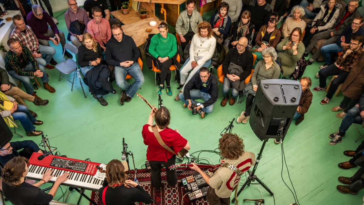Popronde 2025 loopt op zijn eind; na Hoorn nog één weekend te gaan, plus het eindfeest in de Melkweg op 29 november. Als je met de muzikanten praat, teken je op dat de vermoeidheid behoorlijk begint toe te slaan en maar liefst drie acts bellen enkele uren van tevoren af wegens ziekte. Dat zorgt uiteraard voor de nodige stress bij de twee coördinatoren, die ook nog vervanging moeten zoeken voor twee zieke vrijwilligers. Gelukkig stapt LNDE met haar gitarist onmiddellijk in de auto en grijpt ze de kans om vóór haar optreden in proeflokaal Charlies ook de opening voor haar rekening te nemen. Daardoor heeft ze direct de sympathie van de mensen van de locatie en vooral van het publiek, dat niet voor niets is gekomen en geboeid luistert. Ook Grote Geelstaart wordt in allerijl opgetrommeld als alternatieve act en stapt met spoed in de auto richting Hoorn voor een optreden in muziekschool Boedijn – die daar uiteraard erg blij mee zijn.