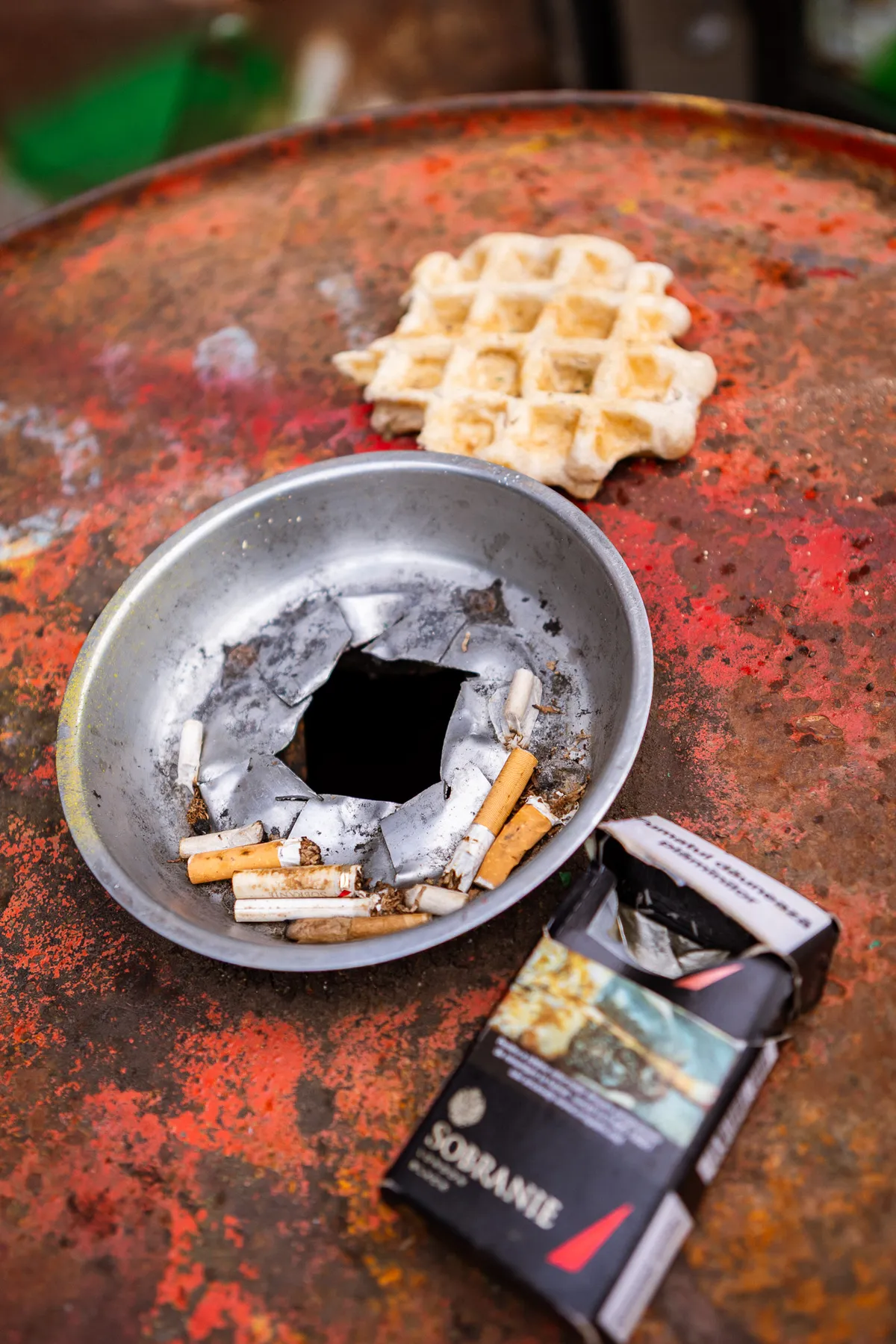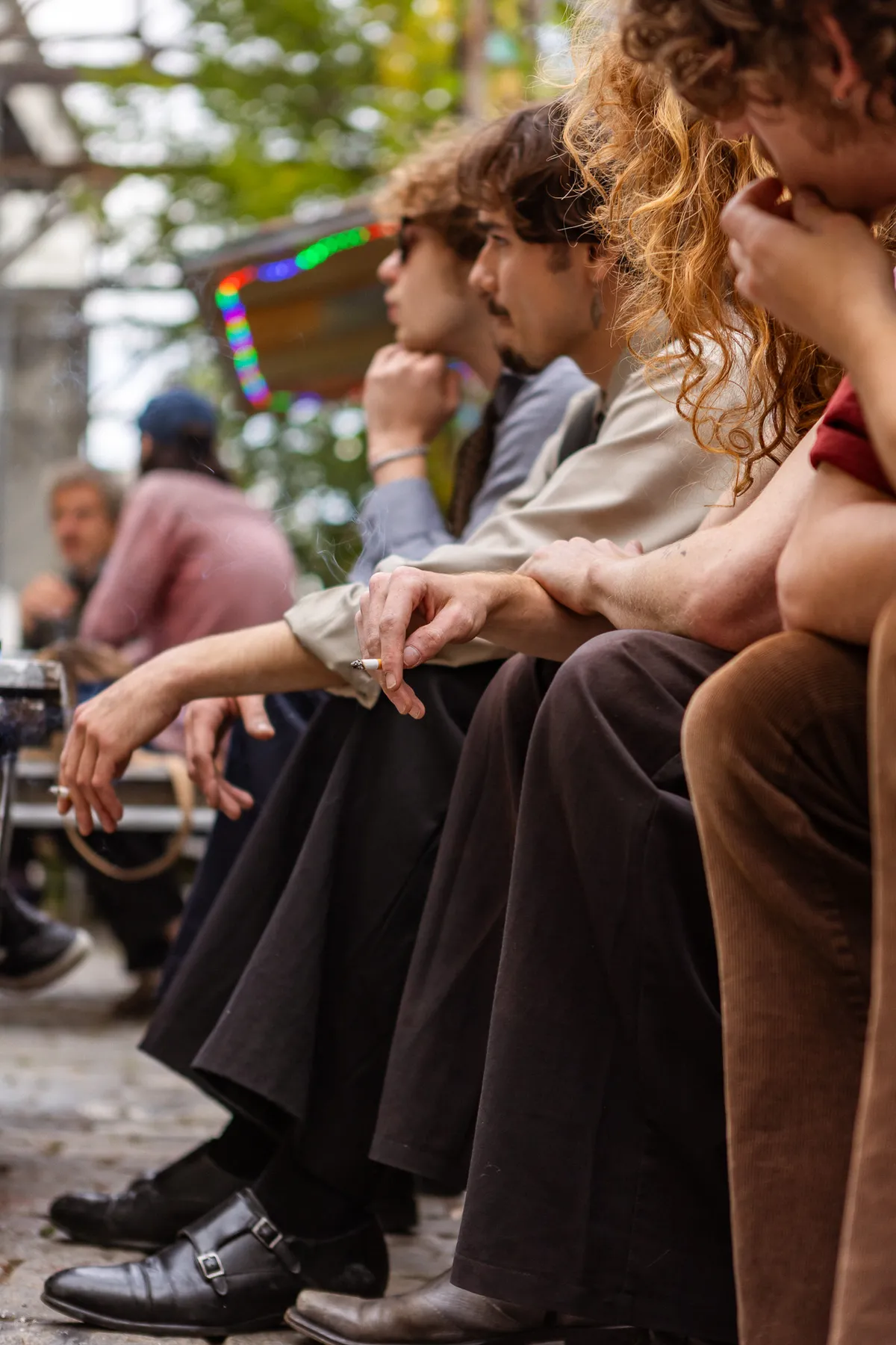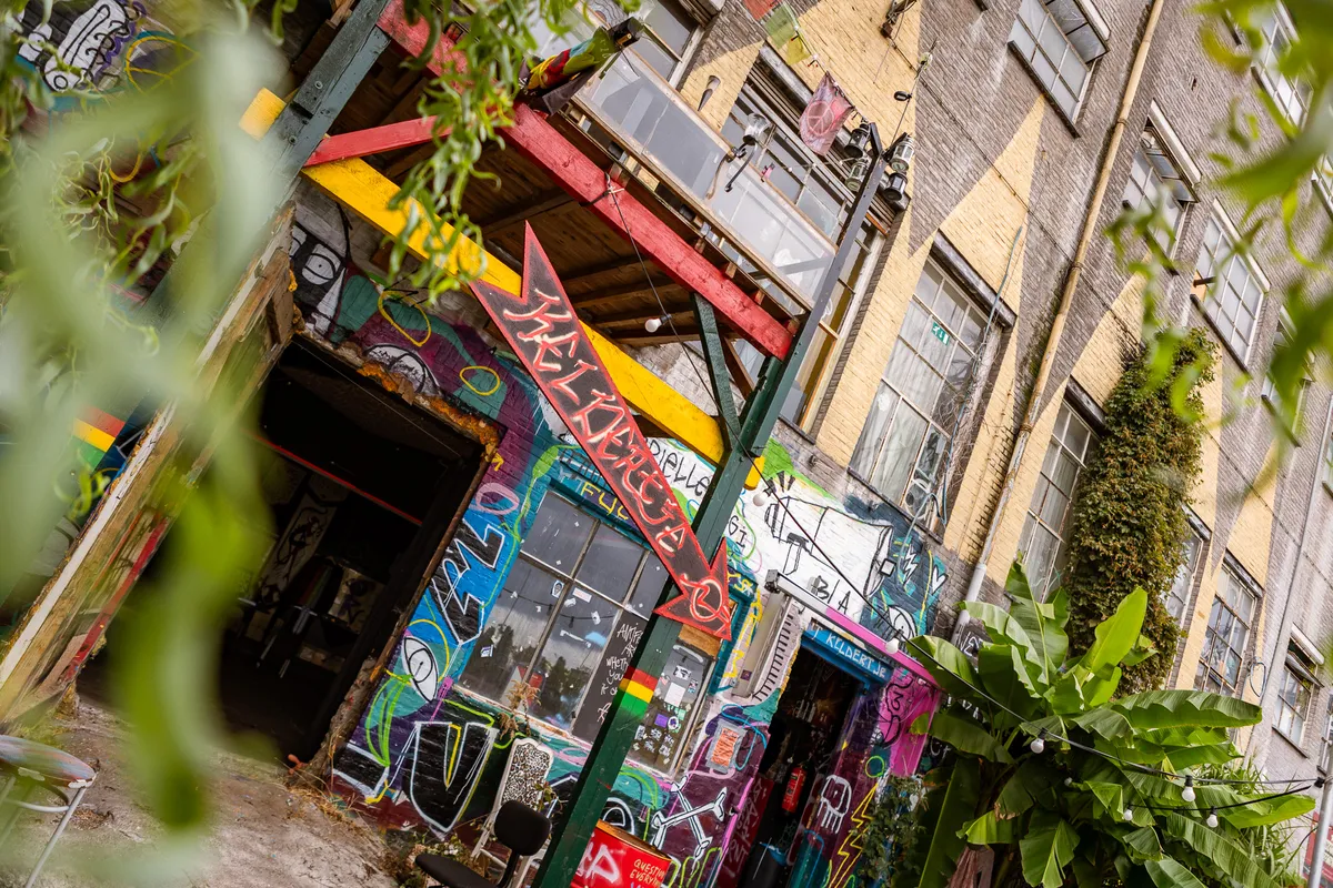 We hebben om 17 uur afgesproken met frontman Jordy bij het Landbouwbelang. Vooraf vroegen we ons al af of dit wel een handig moment zou zijn, aangezien de deuren om 18 uur opengaan en de eerste band om 18.30 uur aftrapt. We zijn dan ook niet verbaasd dat het allemaal een tikkeltje chaotisch oogt. Maar dat past eigenlijk ook perfect bij de underground vibe die het LBB al heeft. Het duurt even voordat de band compleet is - zonnebrillen moeten worden opgezet, peuken worden aangestoken - maar dan kunnen we beginnen aan de oever langs de Maas.