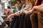 Terwijl we praten druppelen leden van andere bands binnen, blijven even staan kletsen. De leden van F.I.X. wisselen elkaar af in ons gesprek. De fijne sfeer valt op: alles oogt wat chaotisch, maar iedereen begroet elkaar vol enthousiasme, alsof het een grote vriendengroep is.